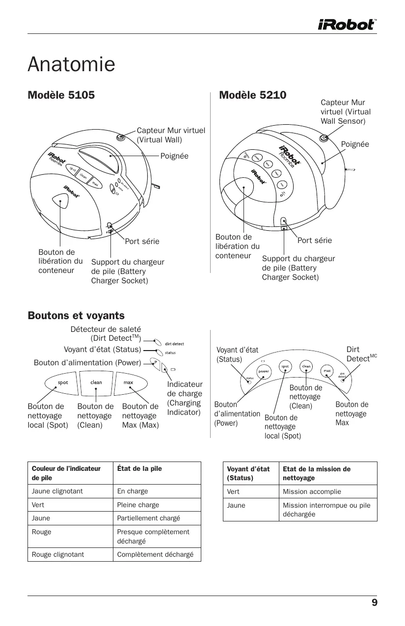 ROOMBA 5105 - Aspirateur robot IROBOT - Notice d'utilisation et mode d'emploi gratuit