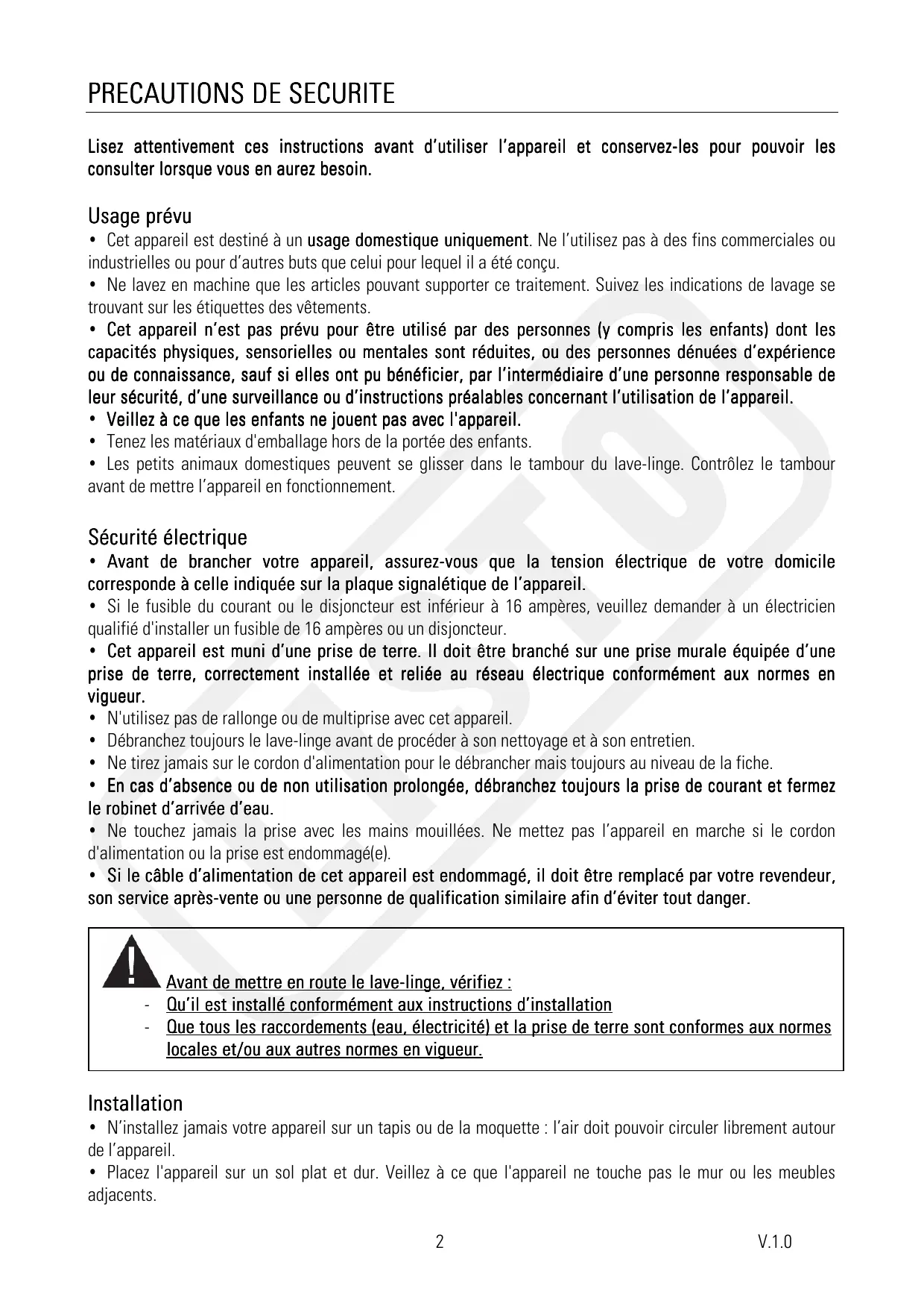 LAVE-LINGE LF 1005-1 - Lave-linge LISTO - Notice d'utilisation et mode d'emploi gratuit