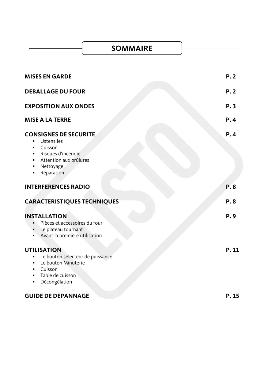 VEUILLEZ LIRE ATTENTIVEMENT CES INSTRUCTIONS AVANT D'UTILISER VOTRE FOUR A MICRO-ONDES ET CONSERVER PRECIEUSEMENT CE MANUEL POUR POUVOIR VOUS Y REPORTER ULTERIEUREMENT.