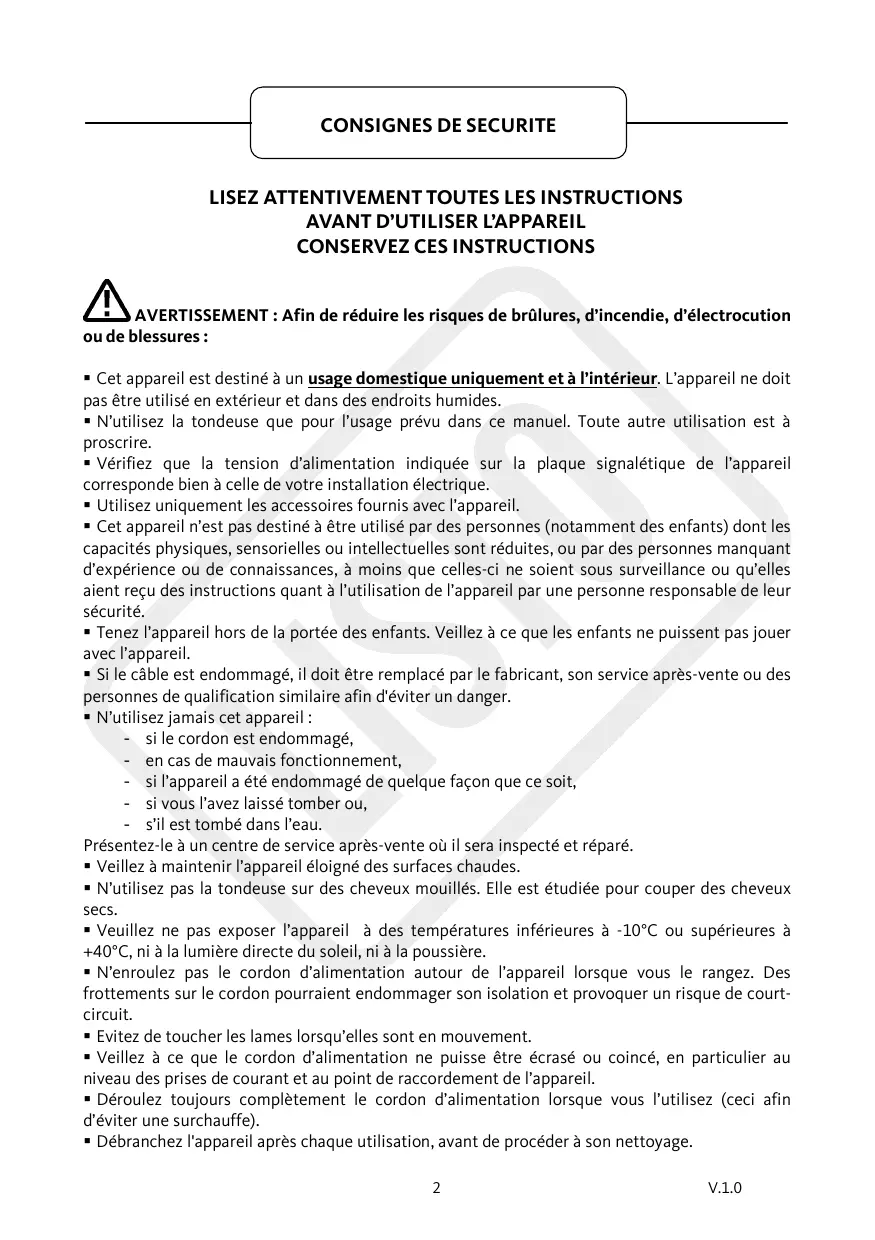 TC L2 - Tondeuse cheveux LISTO - Notice d'utilisation et mode d'emploi gratuit