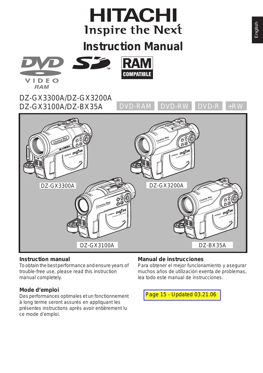 DZ-BX35A - Caméscope HITACHI - Notice d'utilisation et mode d'emploi gratuit