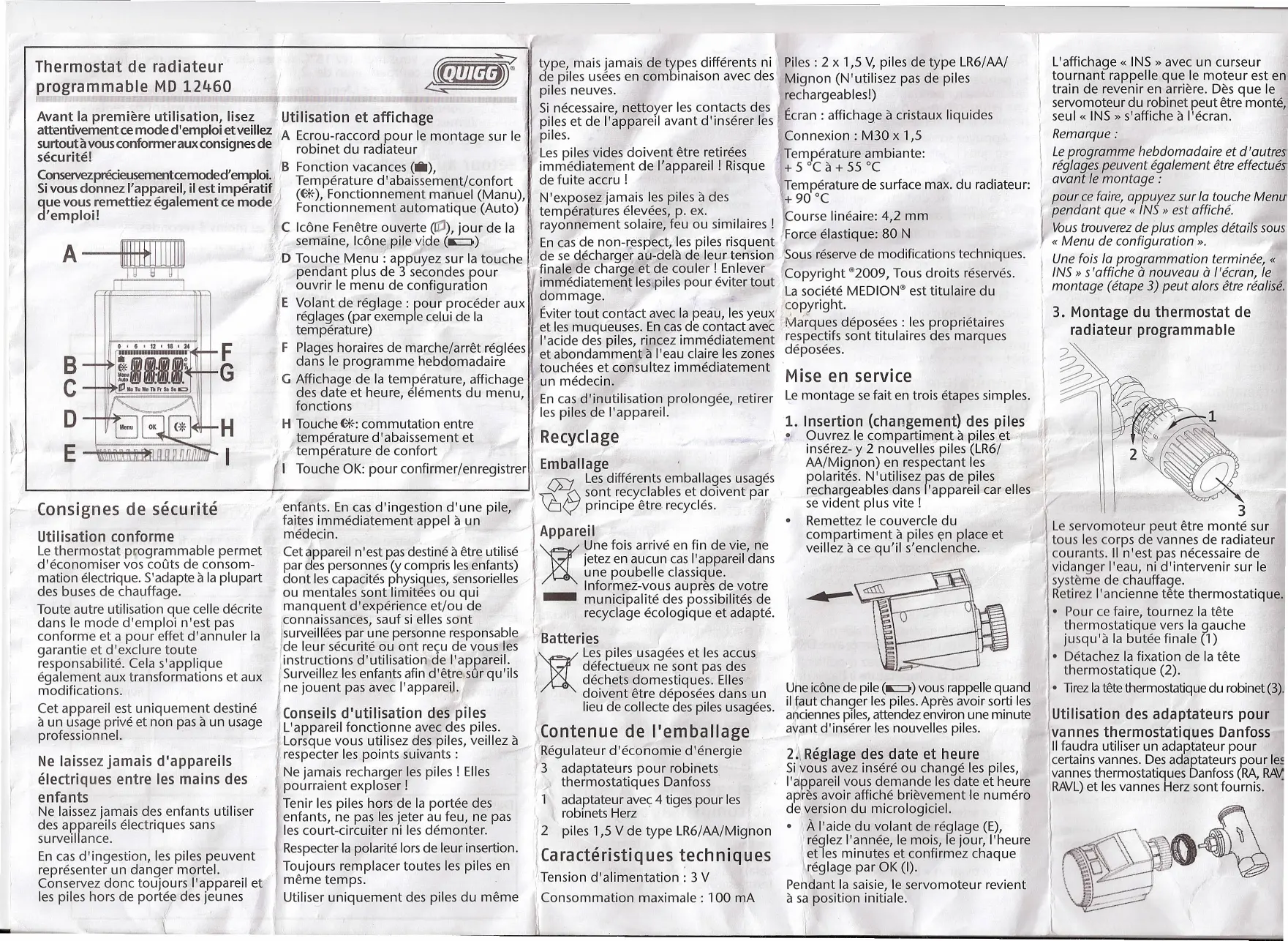 MD 12460 - Thermostat de radiateur programmable QUIGG - Notice d'utilisation et mode d'emploi gratuit