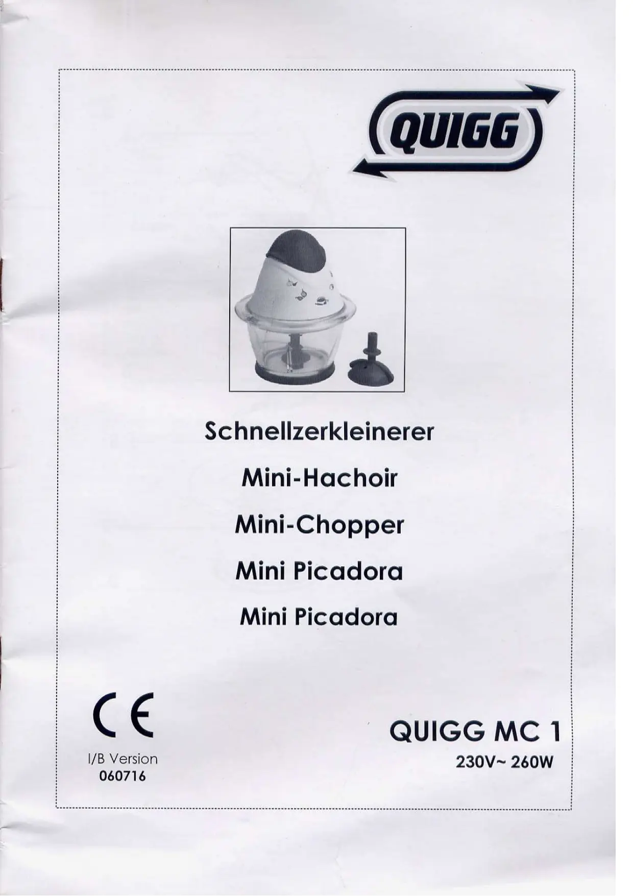 Téléchargez la notice de votre Hachoir électrique au format PDF gratuitement ! Retrouvez votre notice MC 1 - QUIGG et reprennez votre appareil électronique en main. Sur cette page sont publiés tous les documents nécessaires à l'utilisation de votre appareil MC 1 de la marque QUIGG.