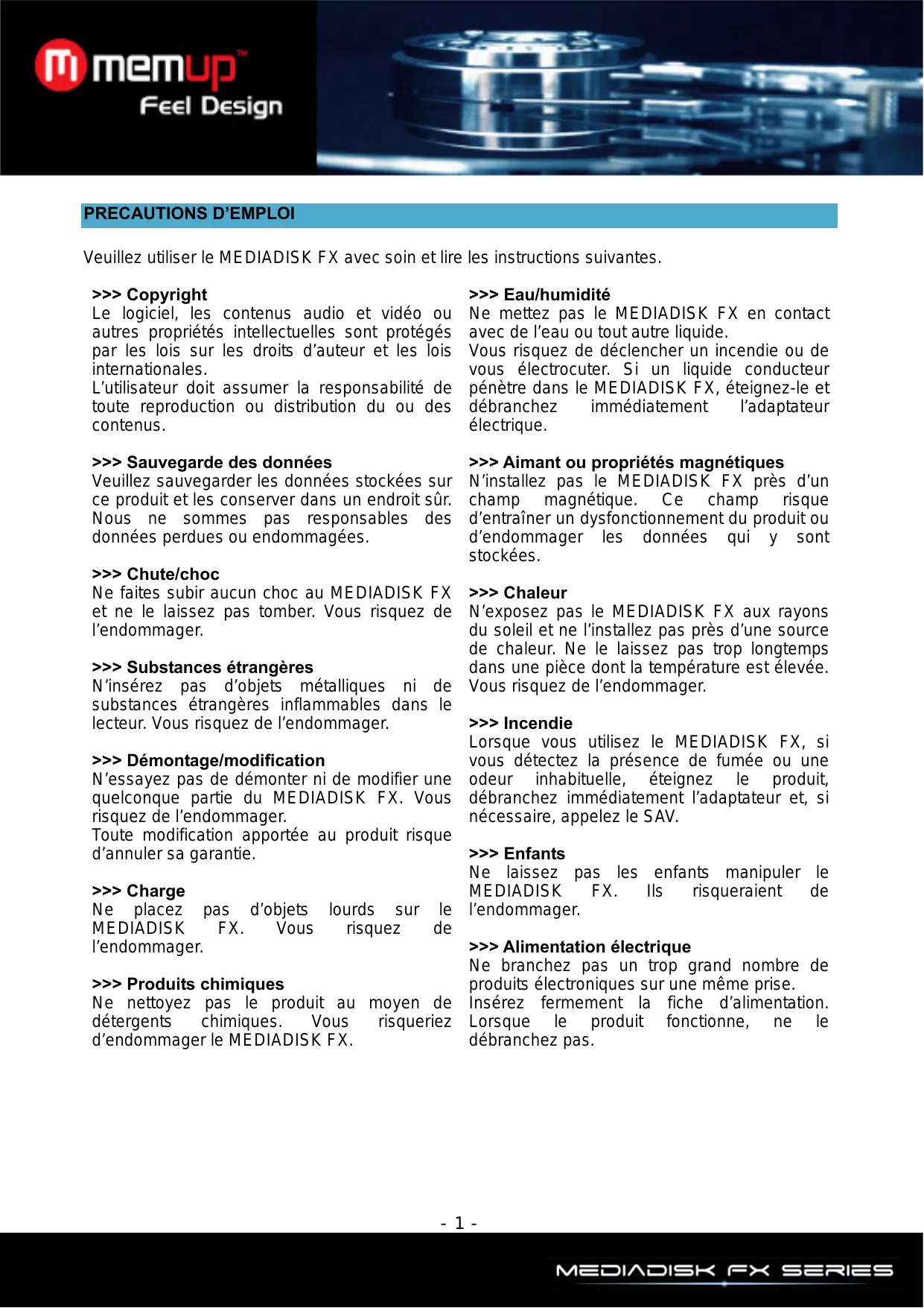 MODE D'EMPLOI MEDIA DISK FX MEMUP