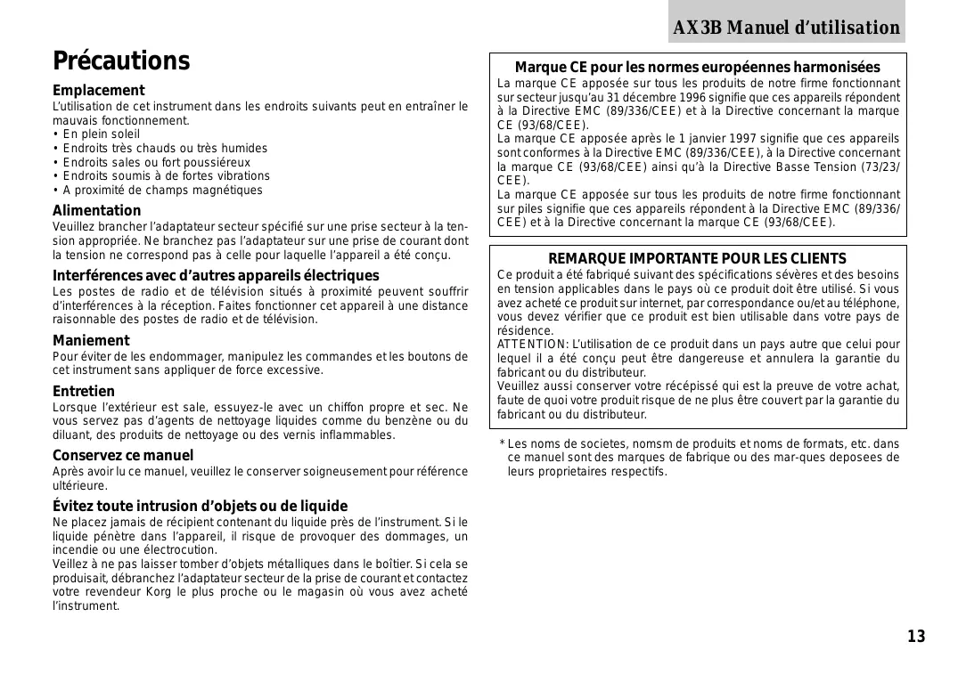 Retrouvez gratuitement la notice de l'appareil AX3B KORG au format PDF.
