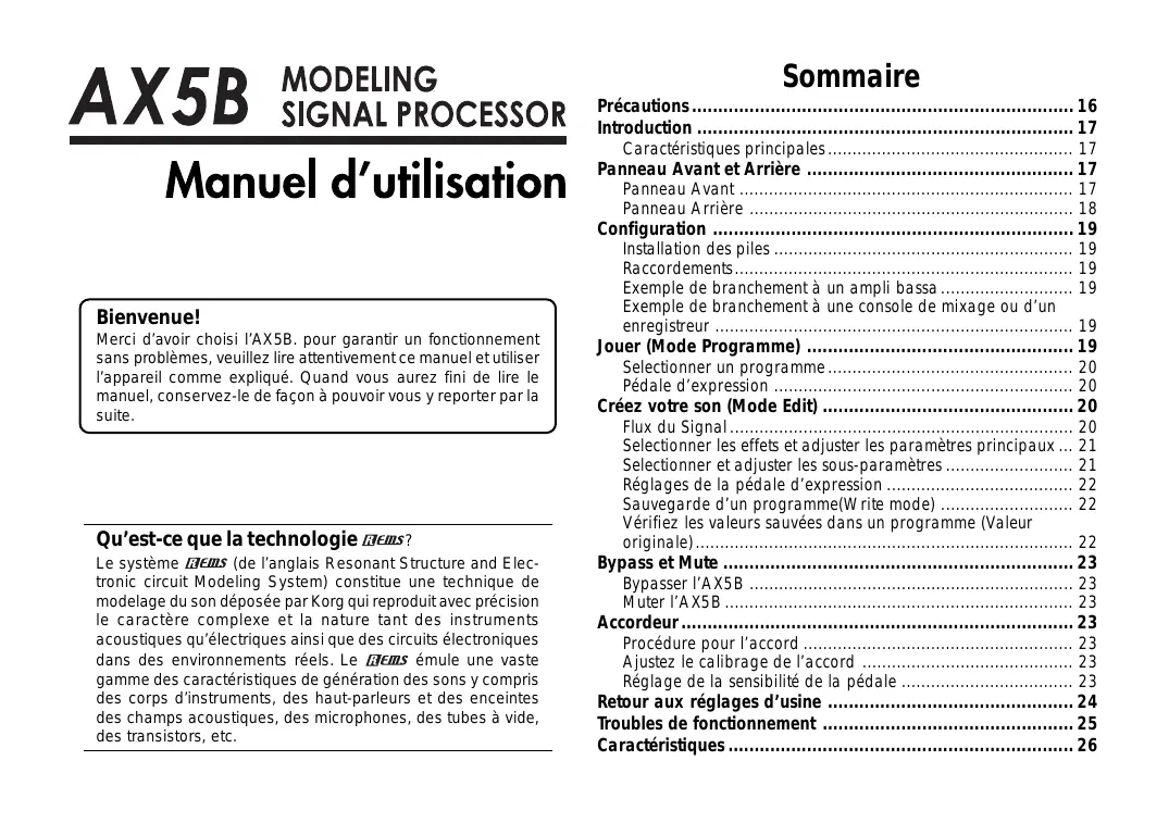 Retrouvez gratuitement la notice de l'appareil AX5B KORG au format PDF.