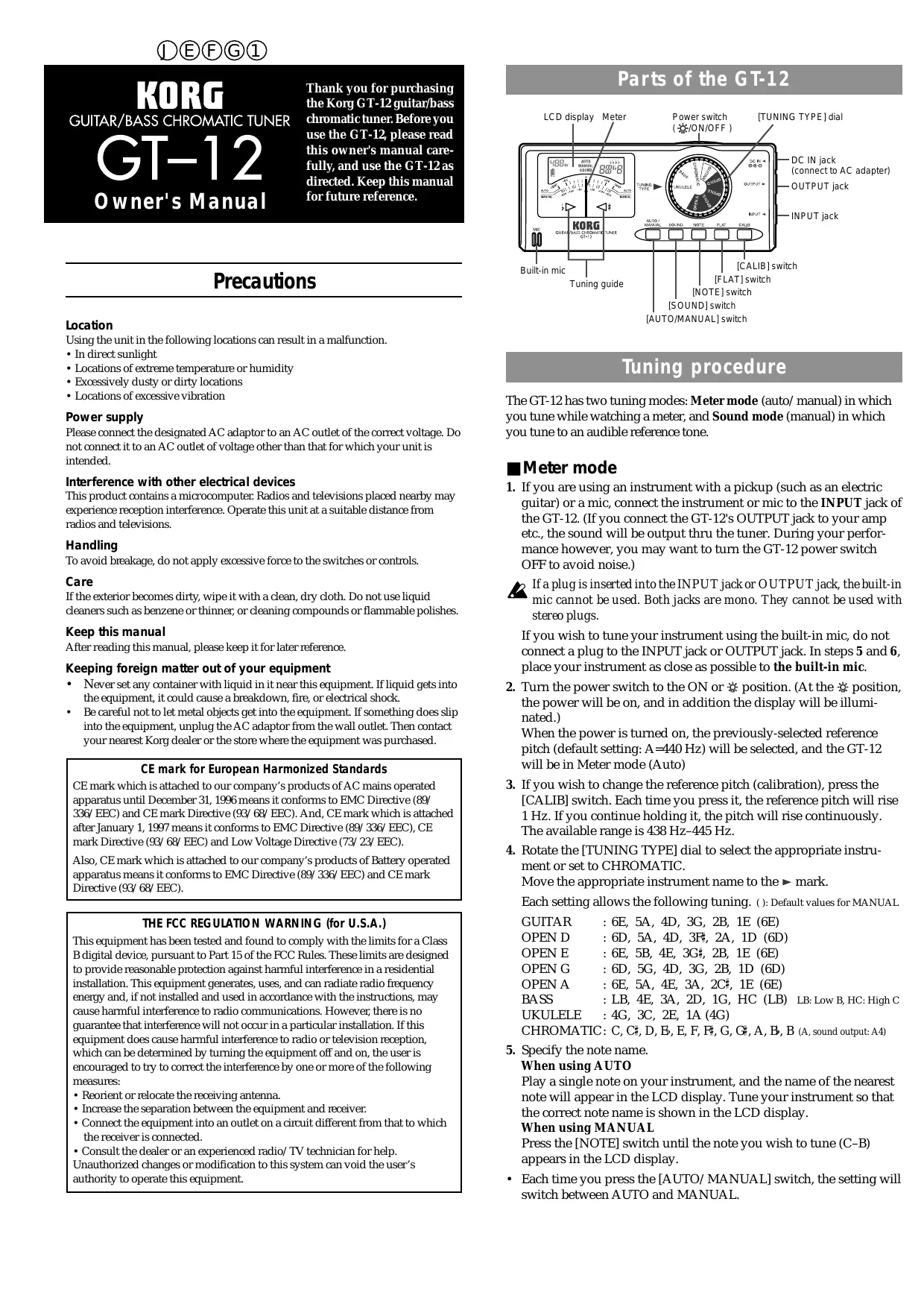 GT-12 - Accordeur KORG - Notice d'utilisation et mode d'emploi gratuit