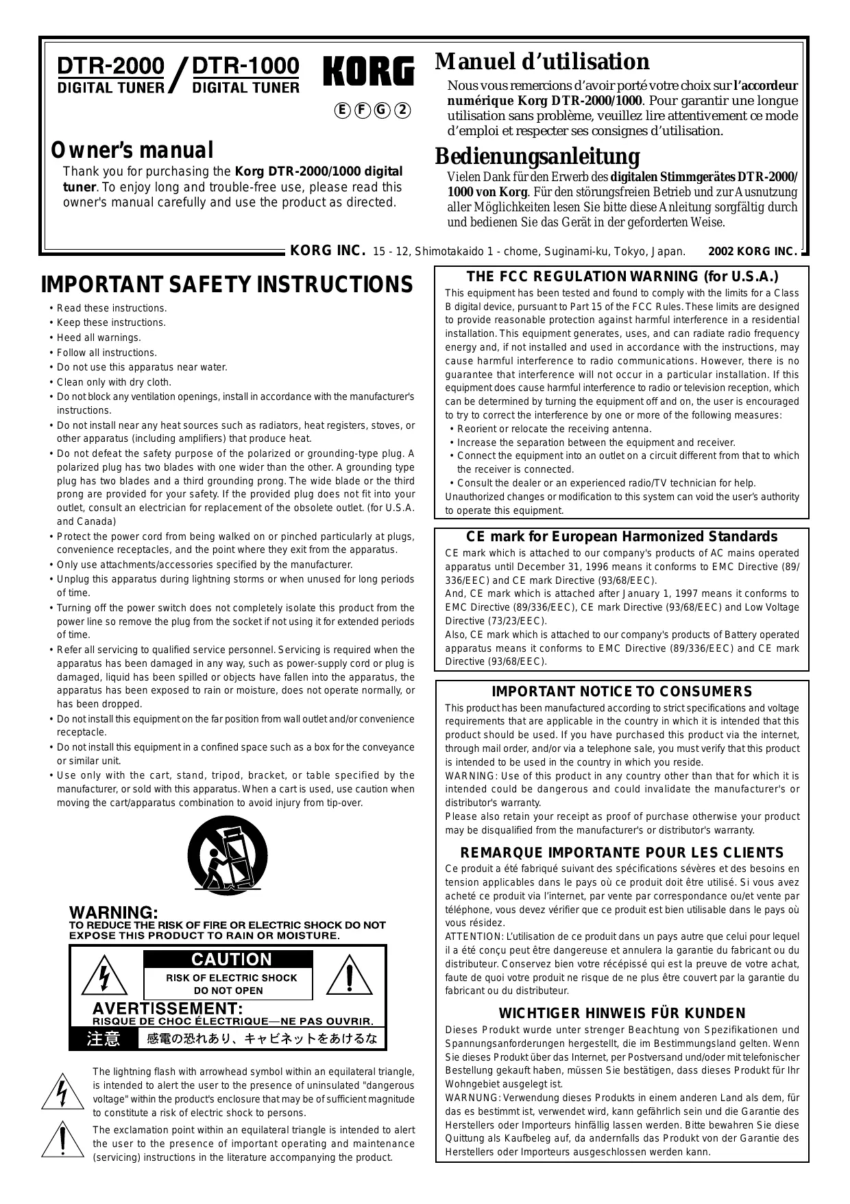 Retrouvez gratuitement la notice de l'appareil DTR1000 KORG au format PDF.
