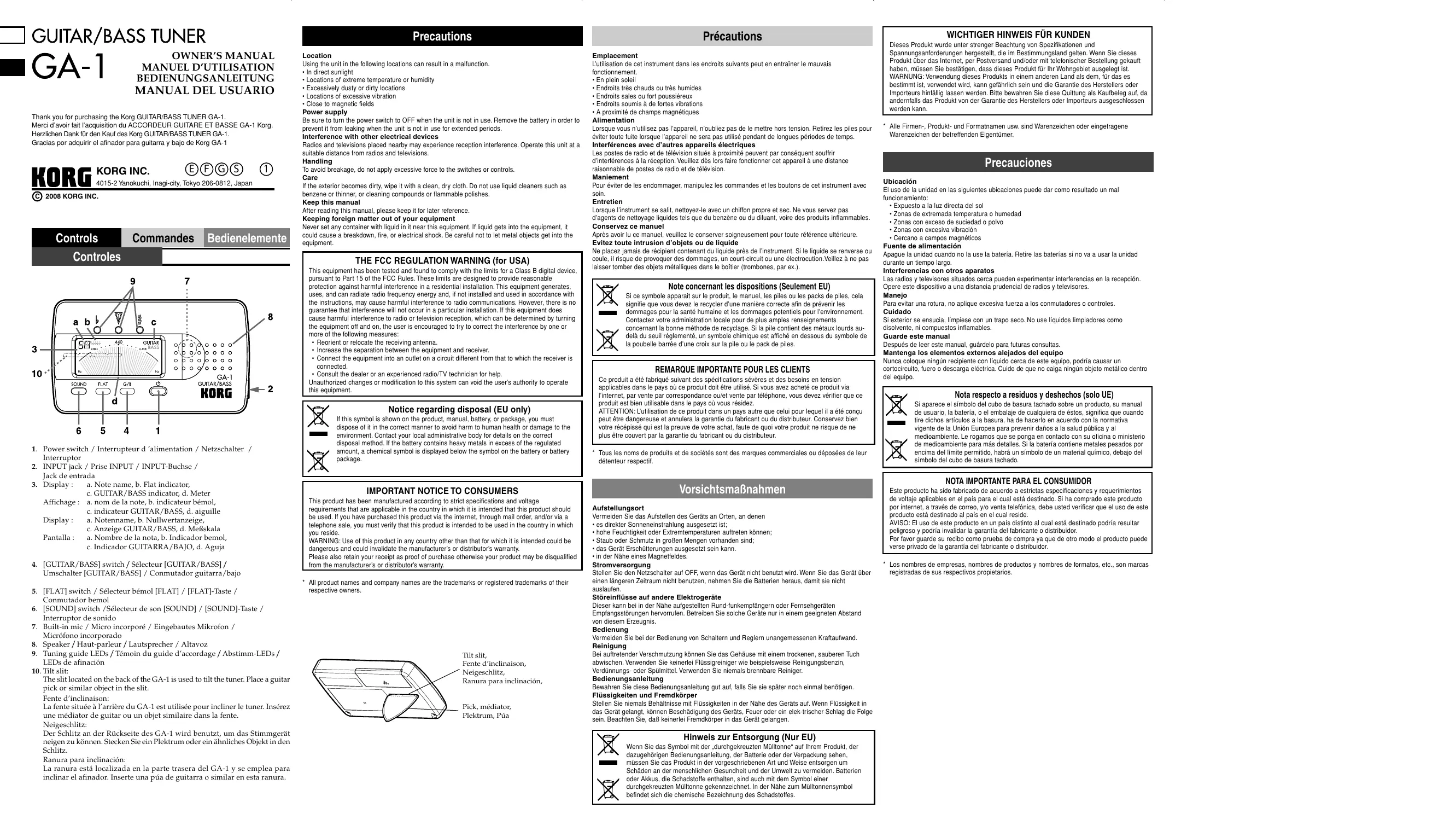GA1 - Accordeur KORG - Notice d'utilisation et mode d'emploi gratuit