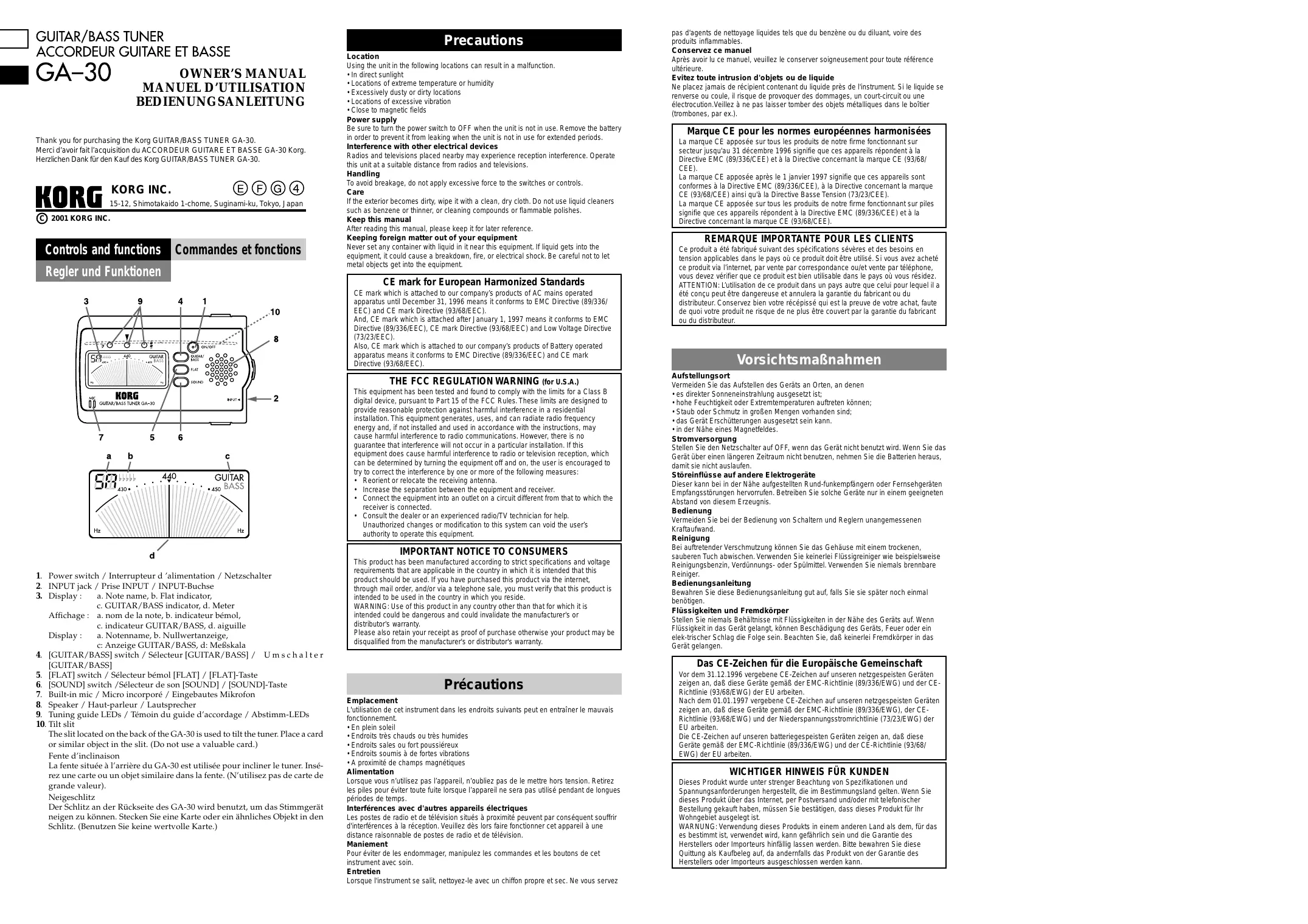 GA30 - Accordeur de guitare KORG - Notice d'utilisation et mode d'emploi gratuit