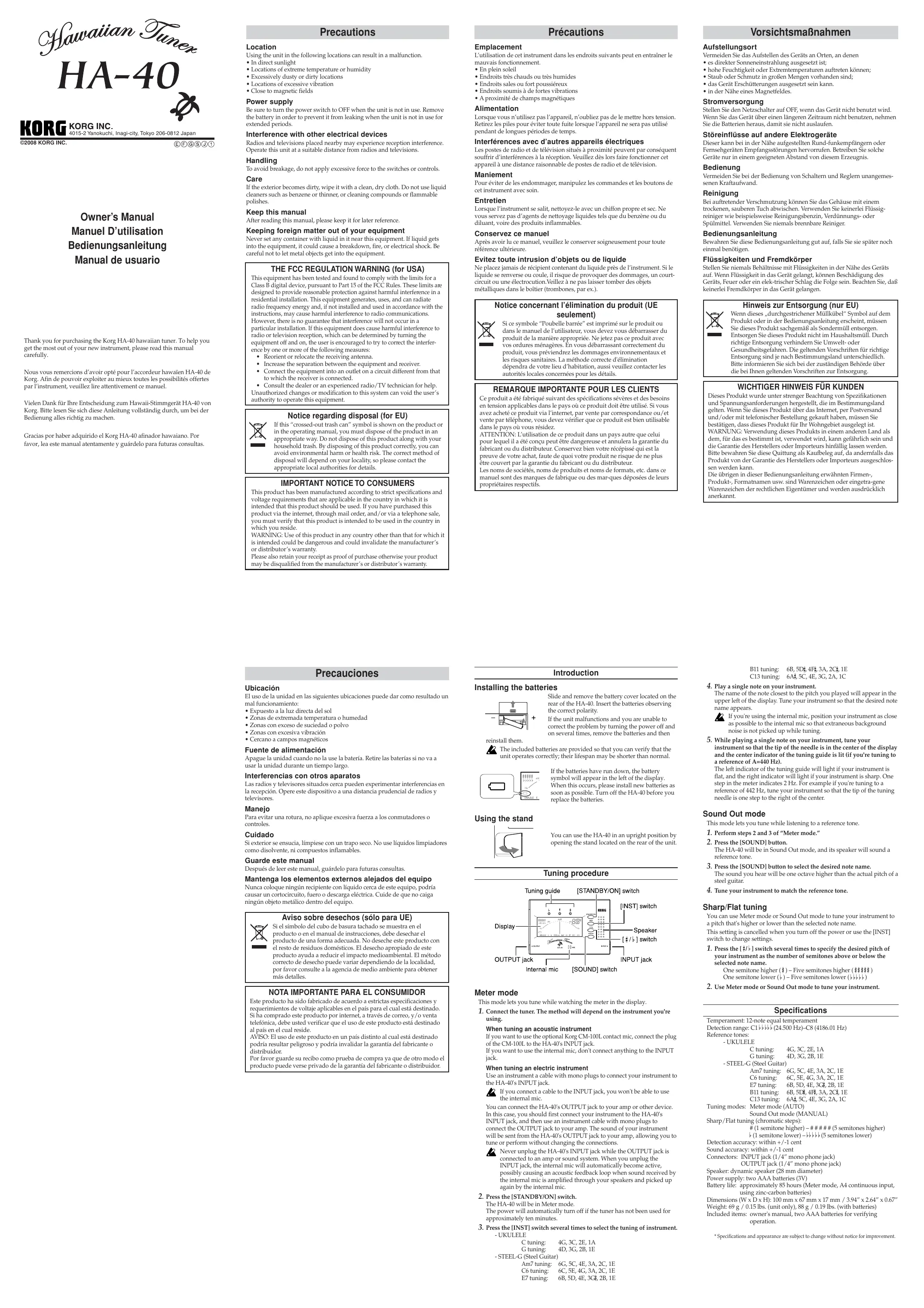 HA40 - Accordeur électronique KORG - Notice d'utilisation et mode d'emploi gratuit
