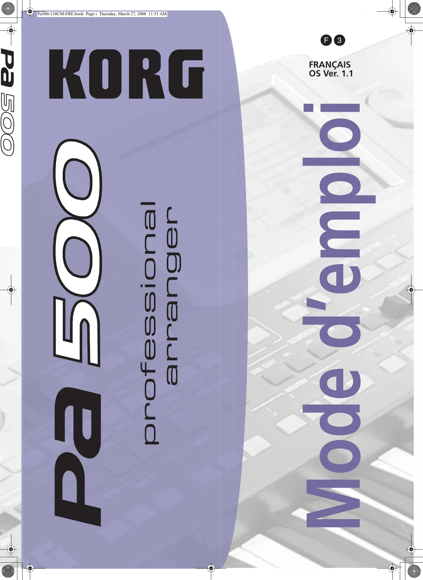 Téléchargez la notice de votre Clavier arrangueur au format PDF gratuitement ! Retrouvez votre notice PA500 - KORG et reprennez votre appareil électronique en main. Sur cette page sont publiés tous les documents nécessaires à l'utilisation de votre appareil PA500 de la marque KORG.