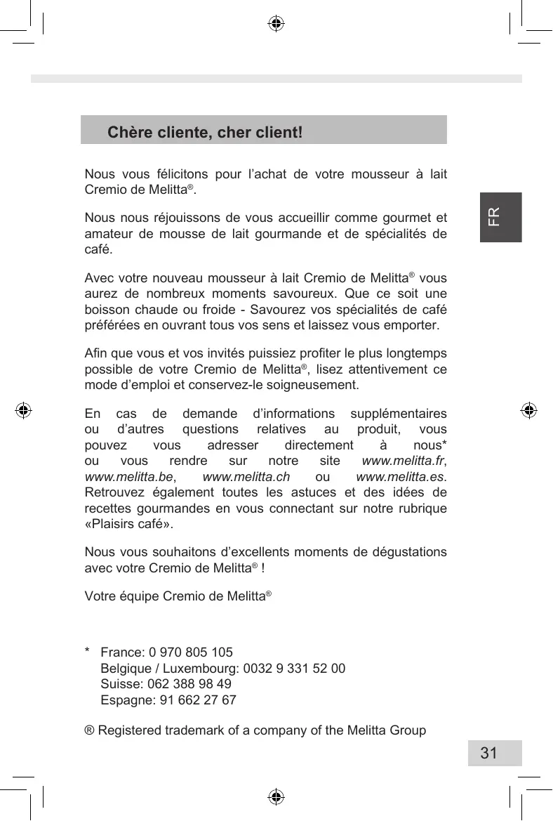 Retrouvez gratuitement la notice de l'appareil CREMIO 100501 MELITTA au format PDF.