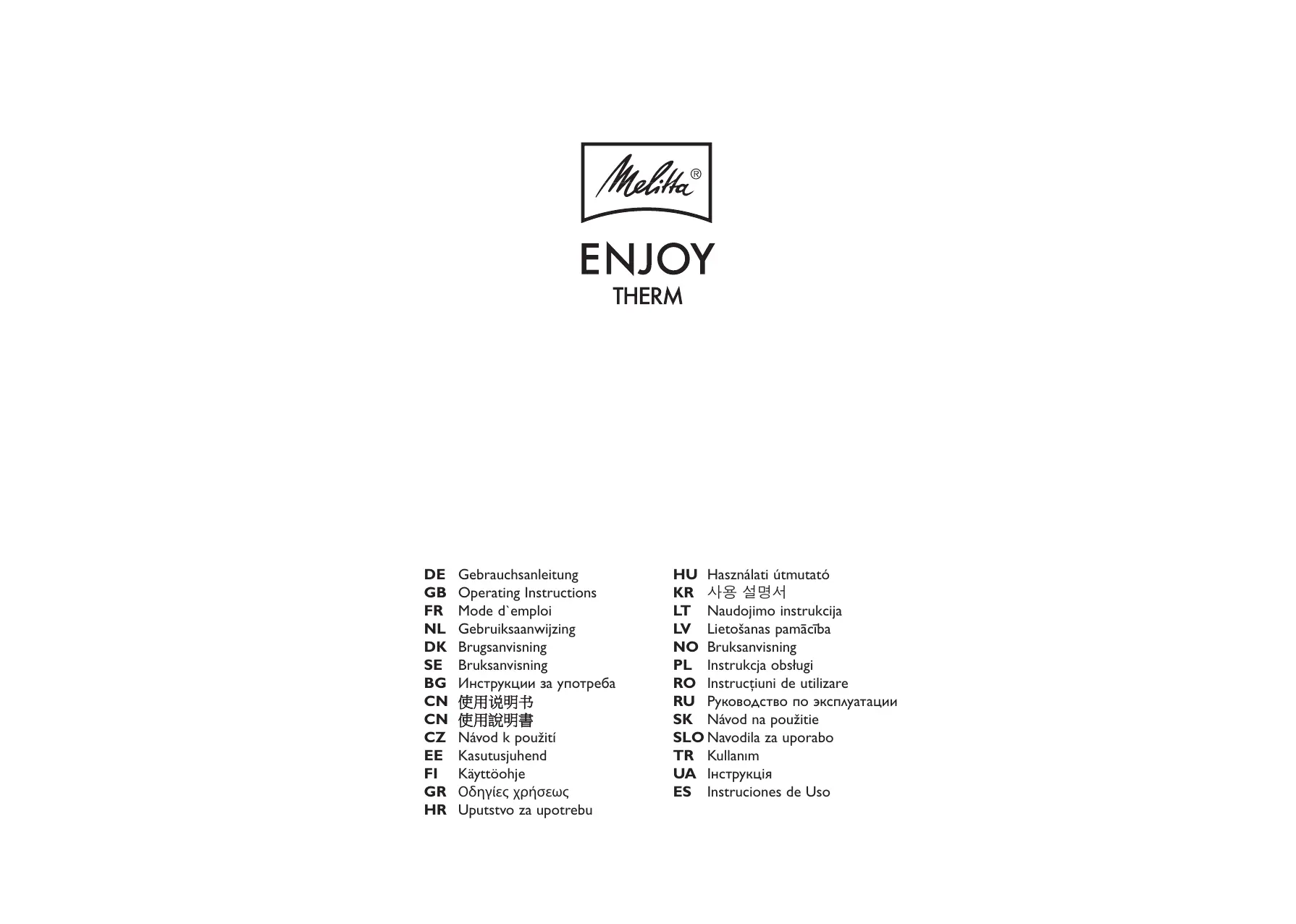 Retrouvez gratuitement la notice de l'appareil ENJOY TOP THERM E MELITTA au format PDF.