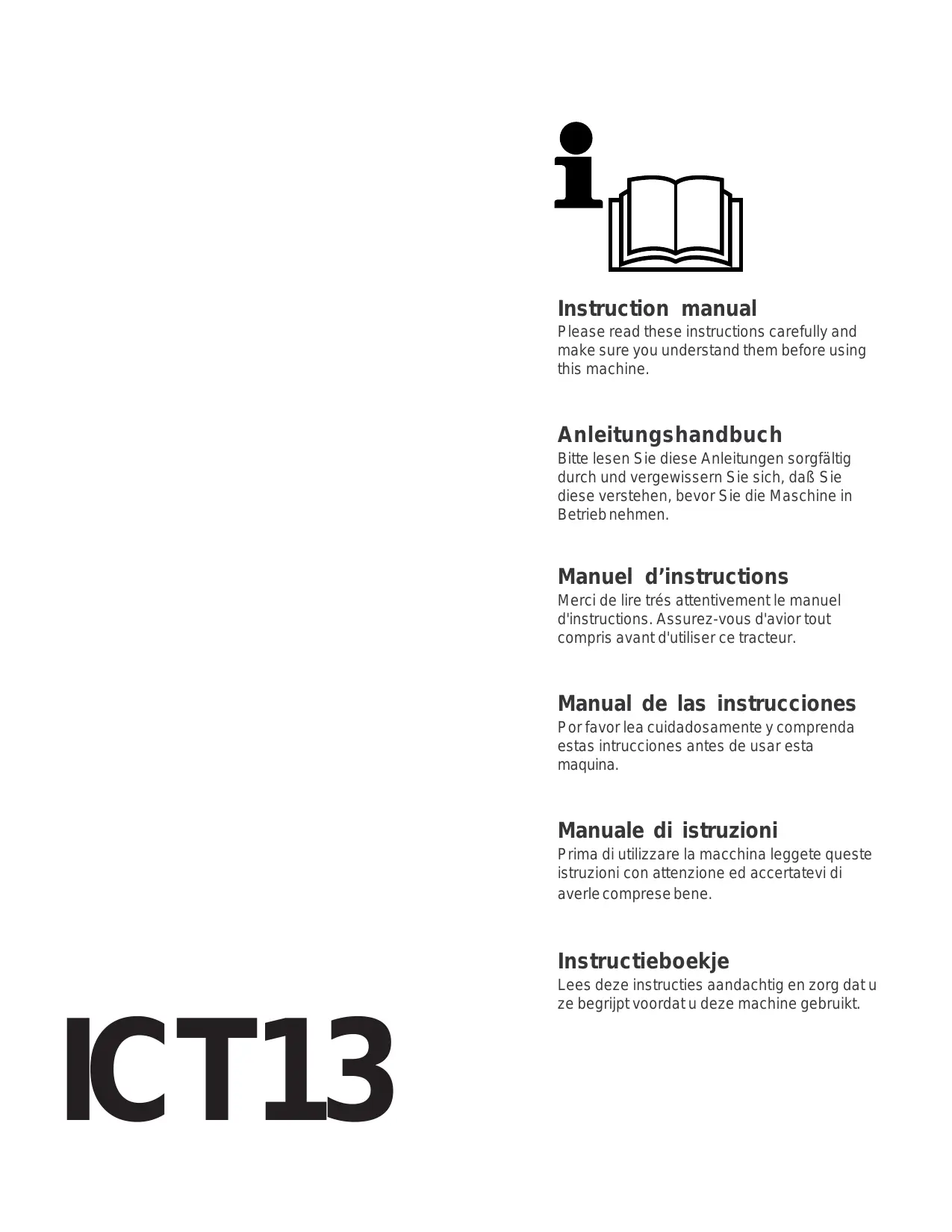Merci de dire très attentivement le manuel d'instructions. Assurez-vous d'avion tout compris avant d'utiliser ce tracteur.