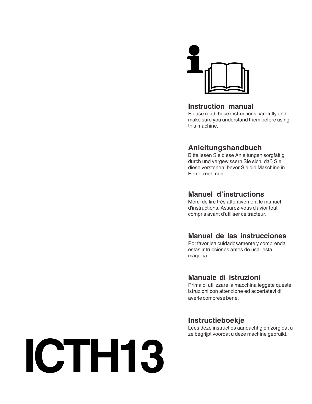 Merci de lire très attentivement le manuel d'instructions. Assurez-vous d'avoir tout compris avant d'utiliser ce tracteur.