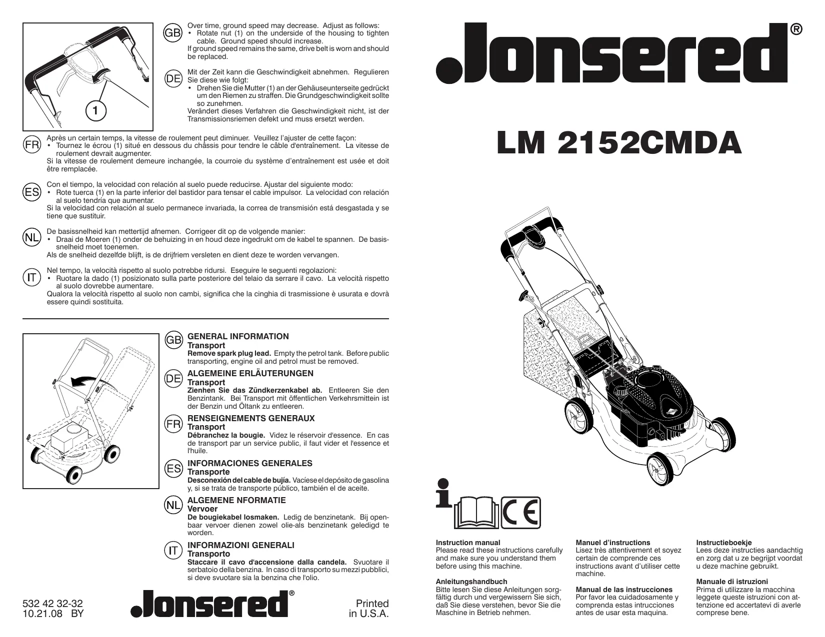 Retrouvez gratuitement la notice de l'appareil LM 2152 CMDA JONSERED au format PDF.