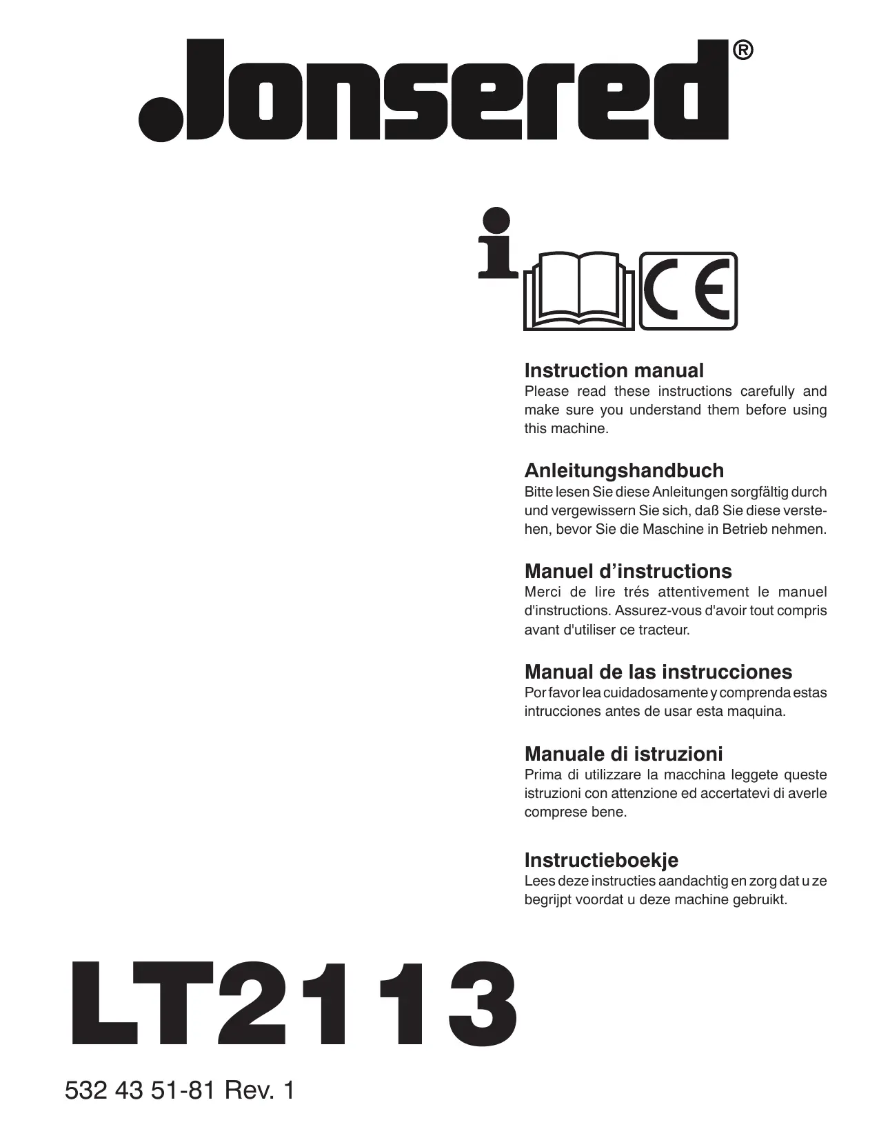 Retrouvez gratuitement la notice de l'appareil LT 2113 JONSERED au format PDF.