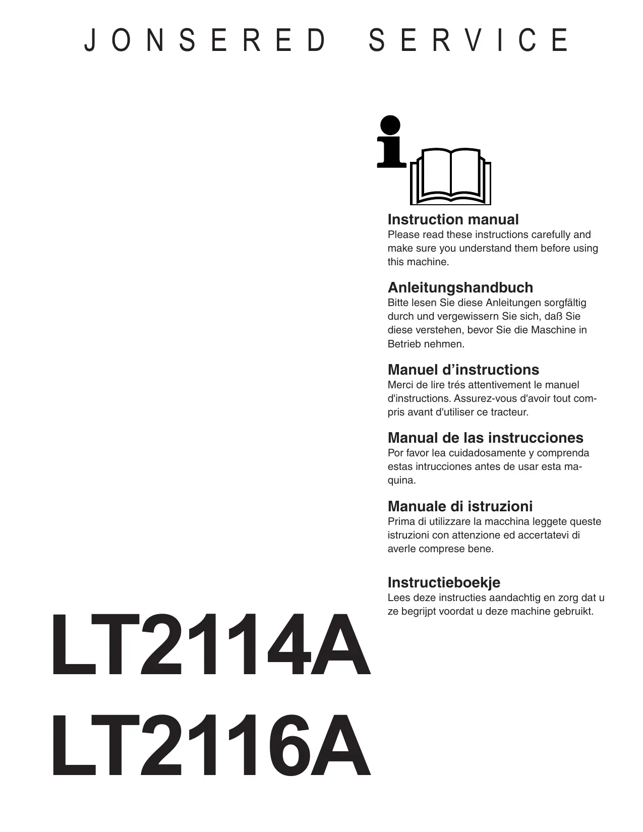 Retrouvez gratuitement la notice de l'appareil LT 2114 A JONSERED au format PDF.