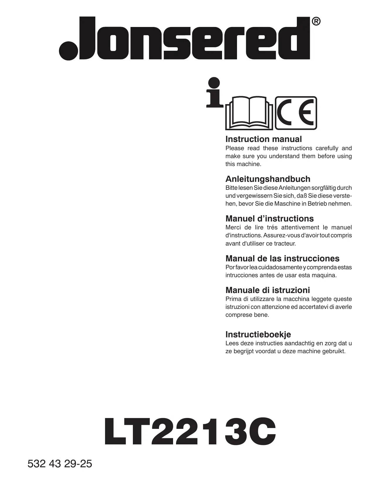 Retrouvez gratuitement la notice de l'appareil LT 2213 C JONSERED au format PDF.