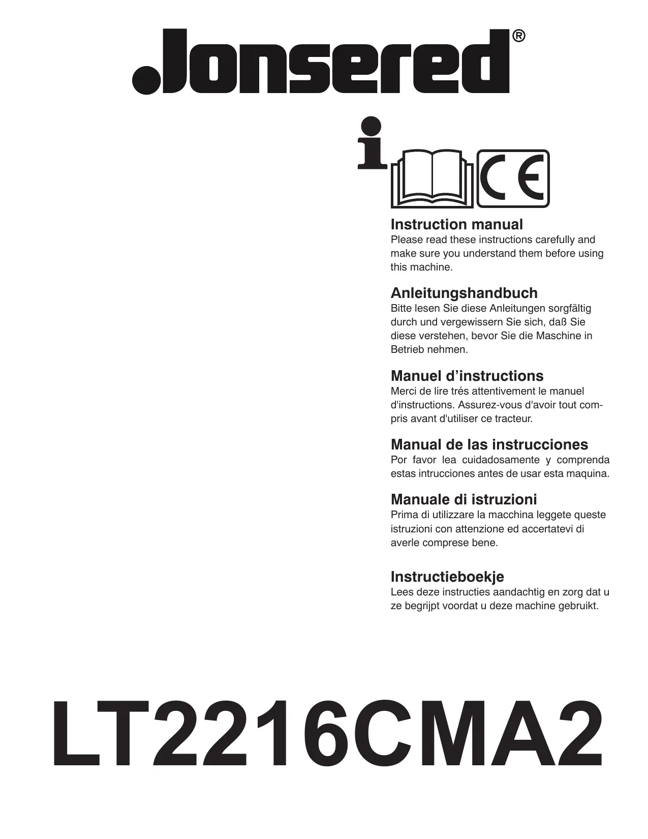 Retrouvez gratuitement la notice de l'appareil LT 2216 CMA2 JONSERED au format PDF.