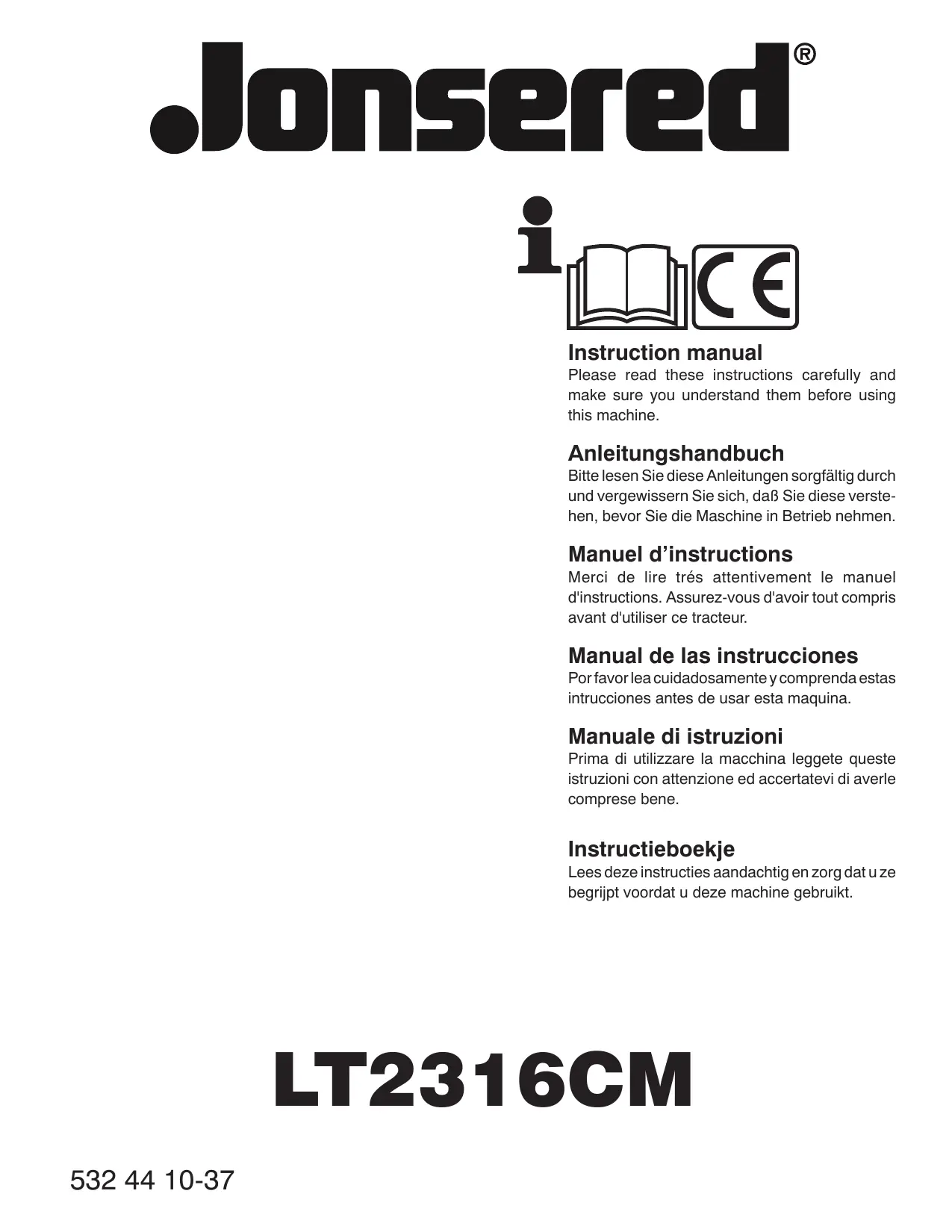 Retrouvez gratuitement la notice de l'appareil LT 2316 CM JONSERED au format PDF.