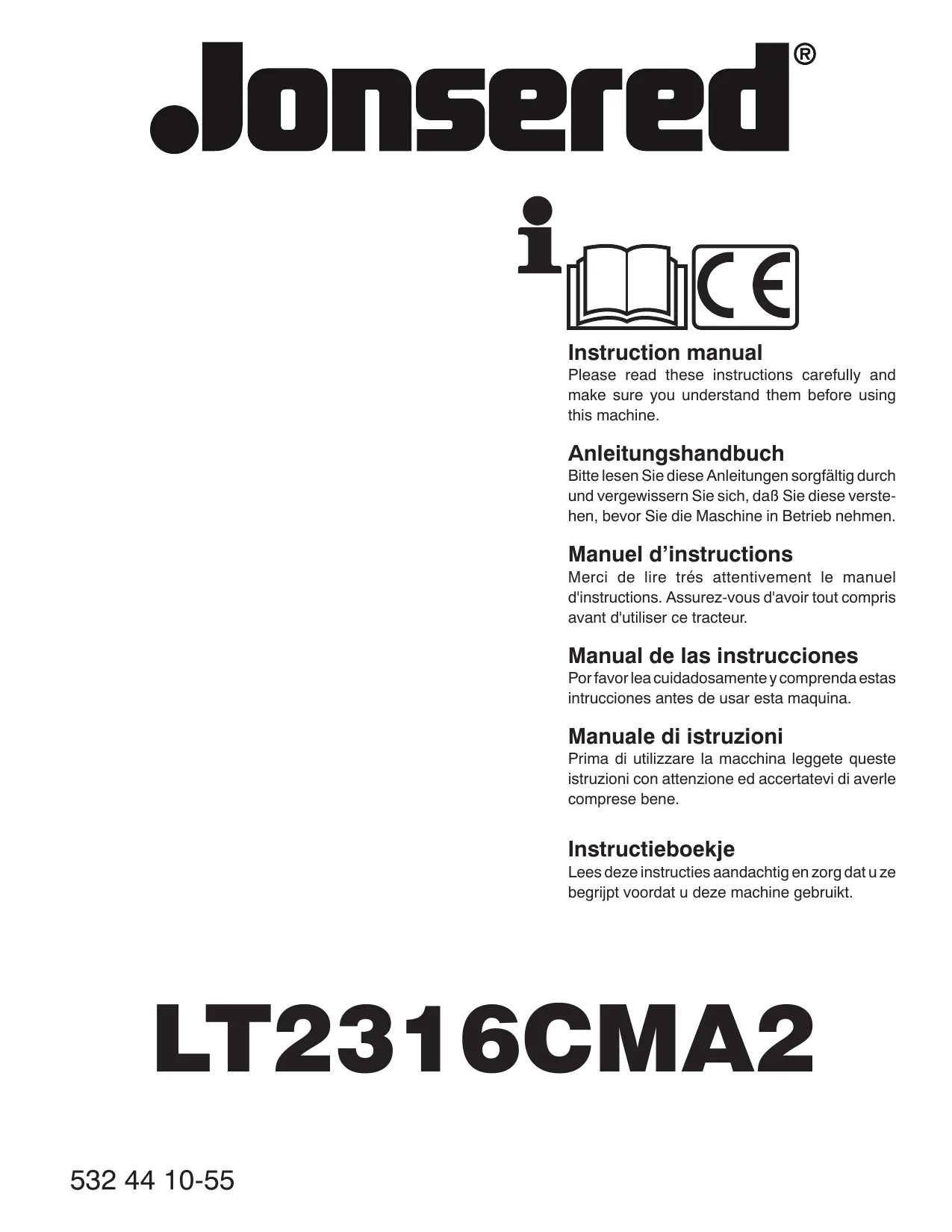 Retrouvez gratuitement la notice de l'appareil LT 2316 CMA2 JONSERED au format PDF.