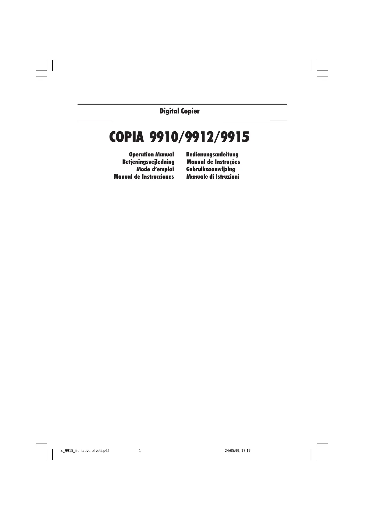 Retrouvez gratuitement la notice de l'appareil COPIA 9915 OLIVETTI au format PDF.