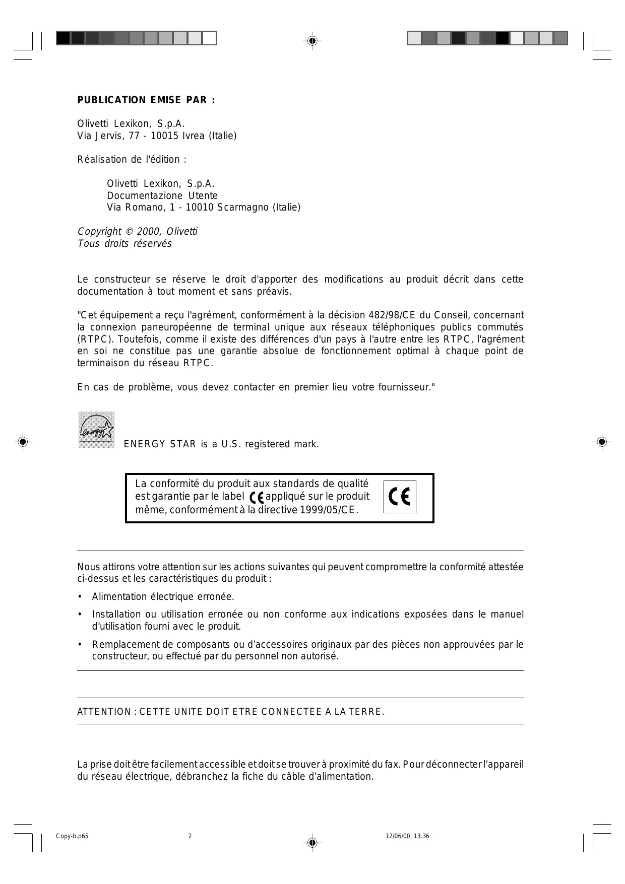 "Cet équipement a reçu l'agrément, conformément à la décision 482/98/CE du Conseil, concernant la connexion paneuropeanne de terminal unique aux réseaux téléphoniques publics commutés (RTPC). Toutefois, comme il existe des différences d'un pays à l'autre entre les RTPC, l'agrément en soi ne constitue pas une garantie absolue de fonctionnement optimal à chaque point de terminaison du réseau RTPC.