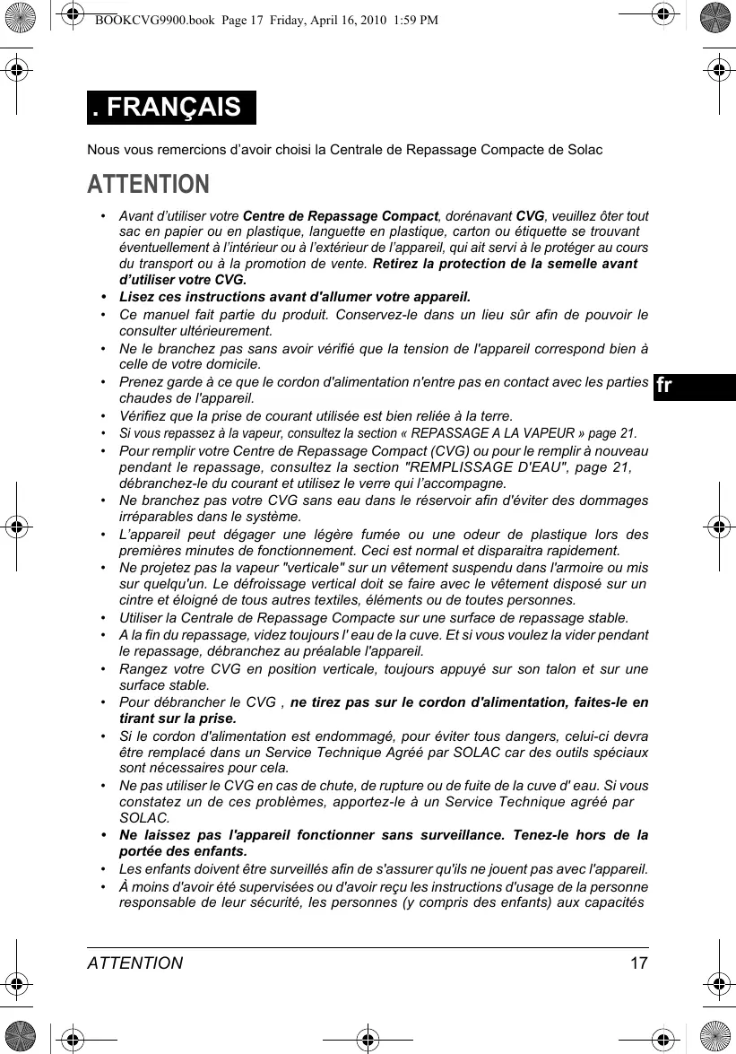 . FRANÇAIS Nous vous remercions d’avoir choisi la Centrale de Repassage Compacte de Solac ATTENTION