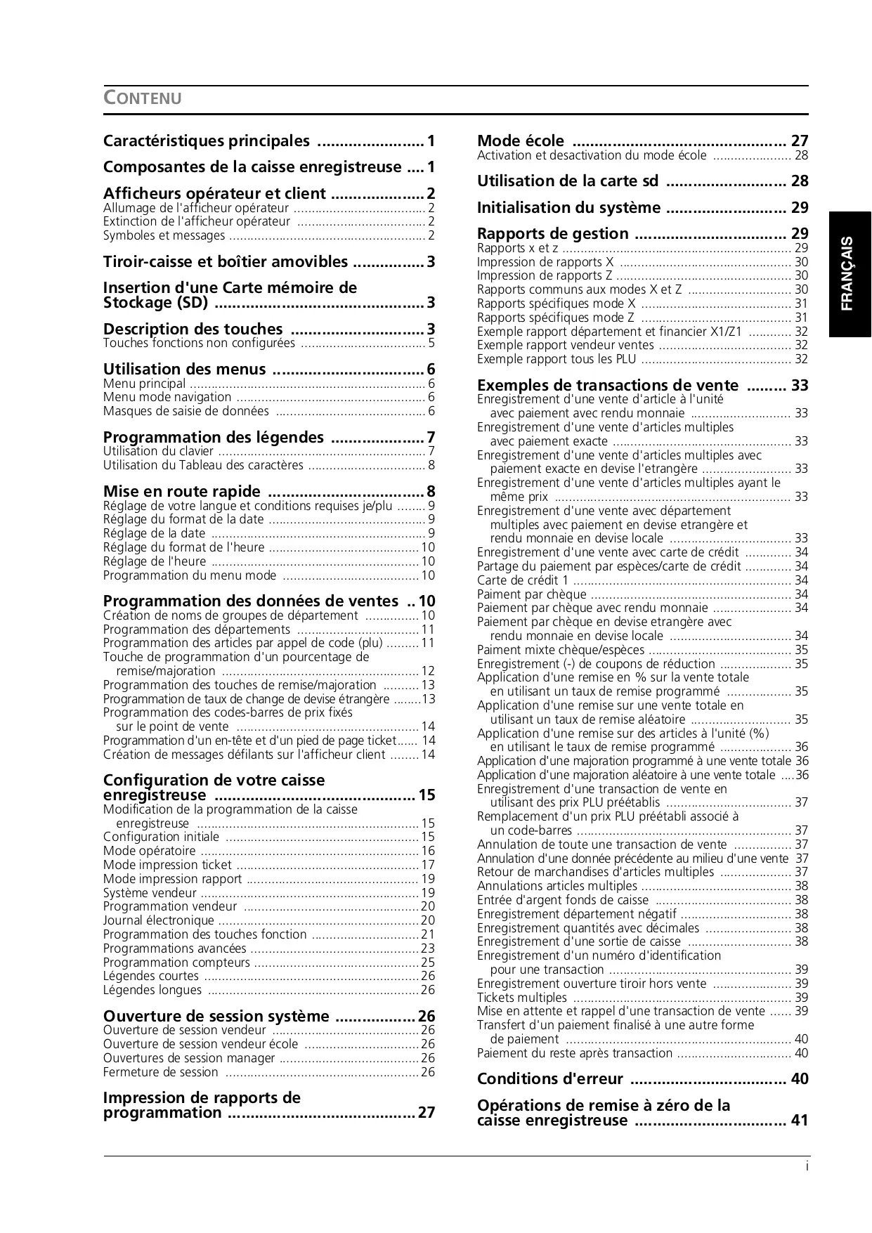 - Impression de rapports Z p. 30
