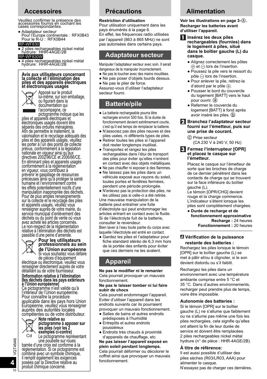 MODE D'EMPLOI RP-WF830 PANASONIC