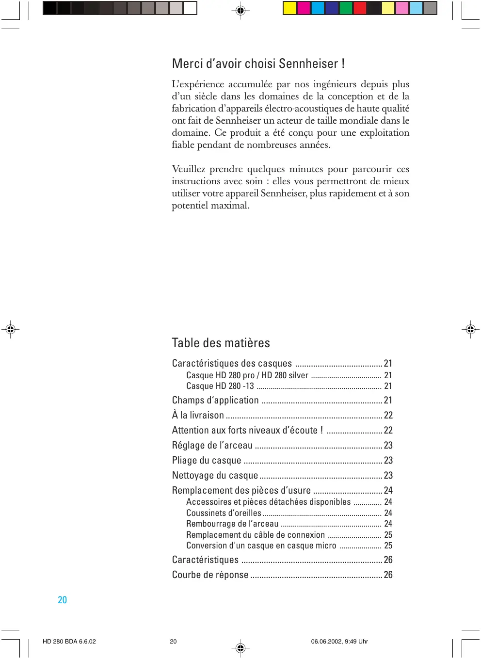 Retrouvez gratuitement la notice de l'appareil HD280 PRO SENNHEISER au format PDF.