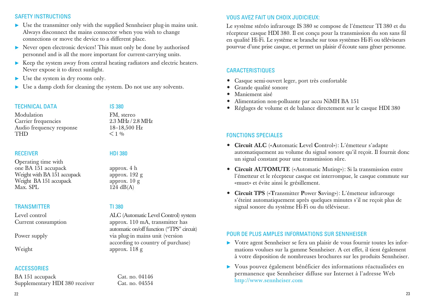 IS 380 - Casque audio SENNHEISER - Notice d'utilisation et mode d'emploi gratuit