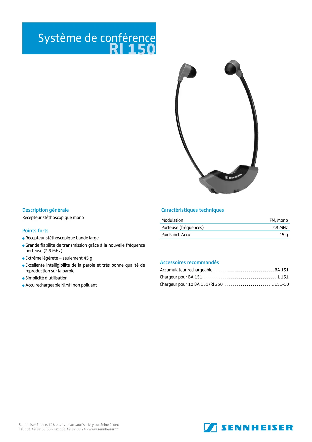 Voici quelques informations importantes concernant le Sennheiser RI 150 :