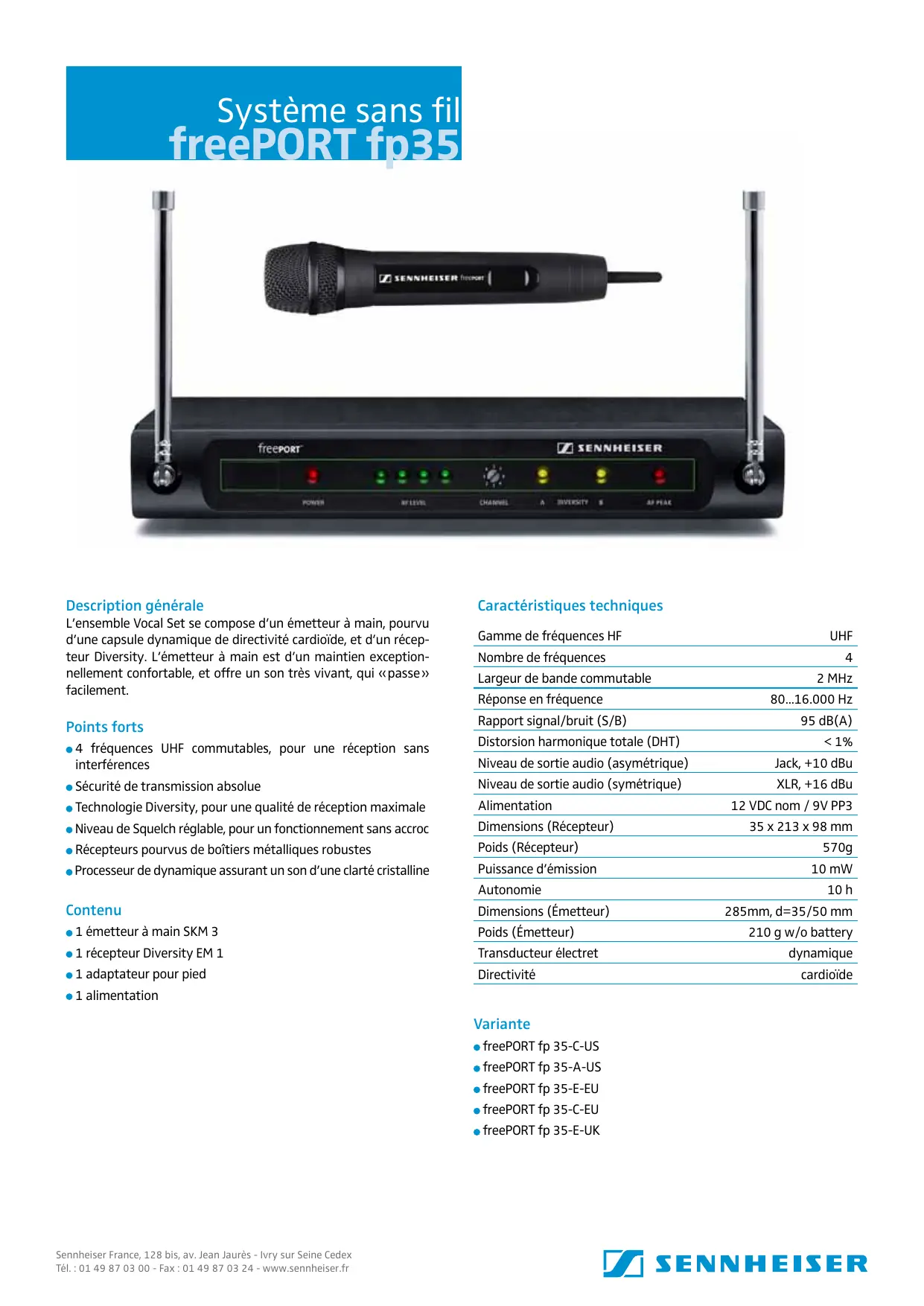 | Compatibilités | Compatible avec les systèmes de réception Sennheiser Freeport |