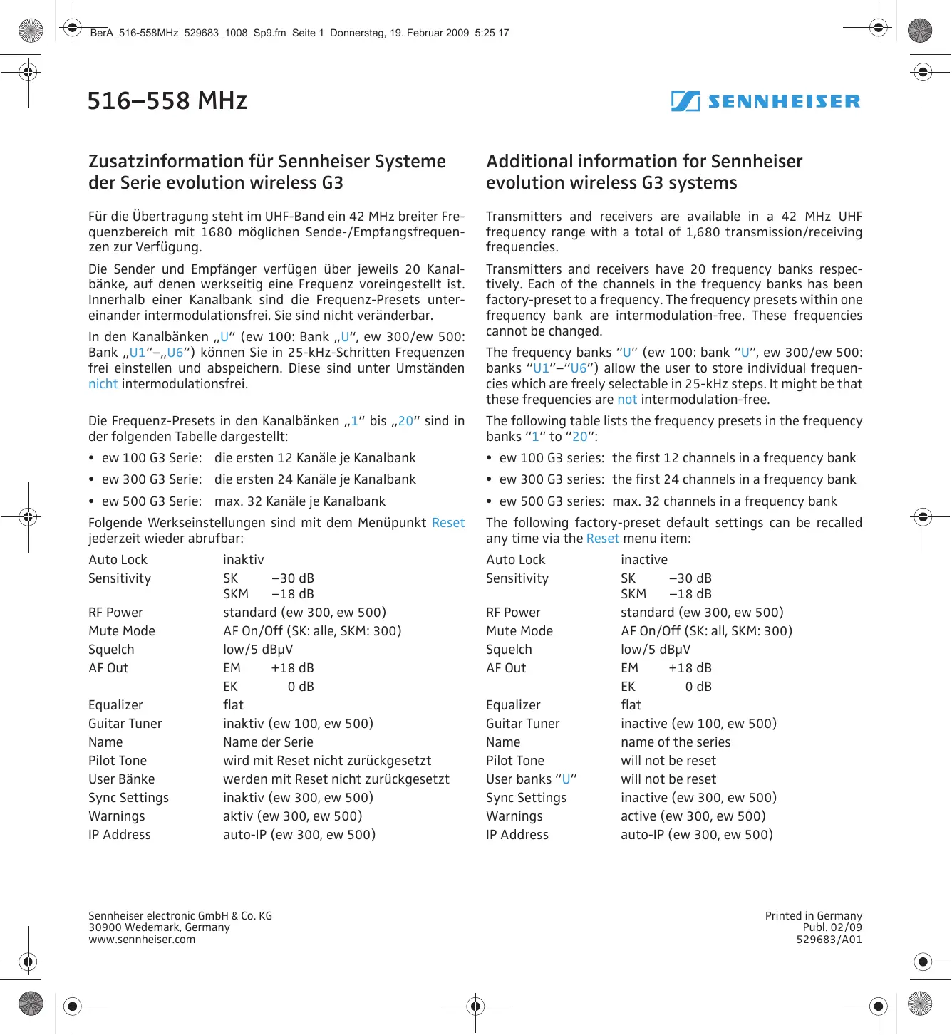 ** ew 300/ew 500 – frei wählbare Frequenzen / freely selectable frequencies / fréquences au choix / frecuencias de libre elección Para la transmisión se dispone de un rango de frecuencia de 42 MHz de amplitud con 1680 frecuencias de transmisión/ recepción posibles en la banda UHF.