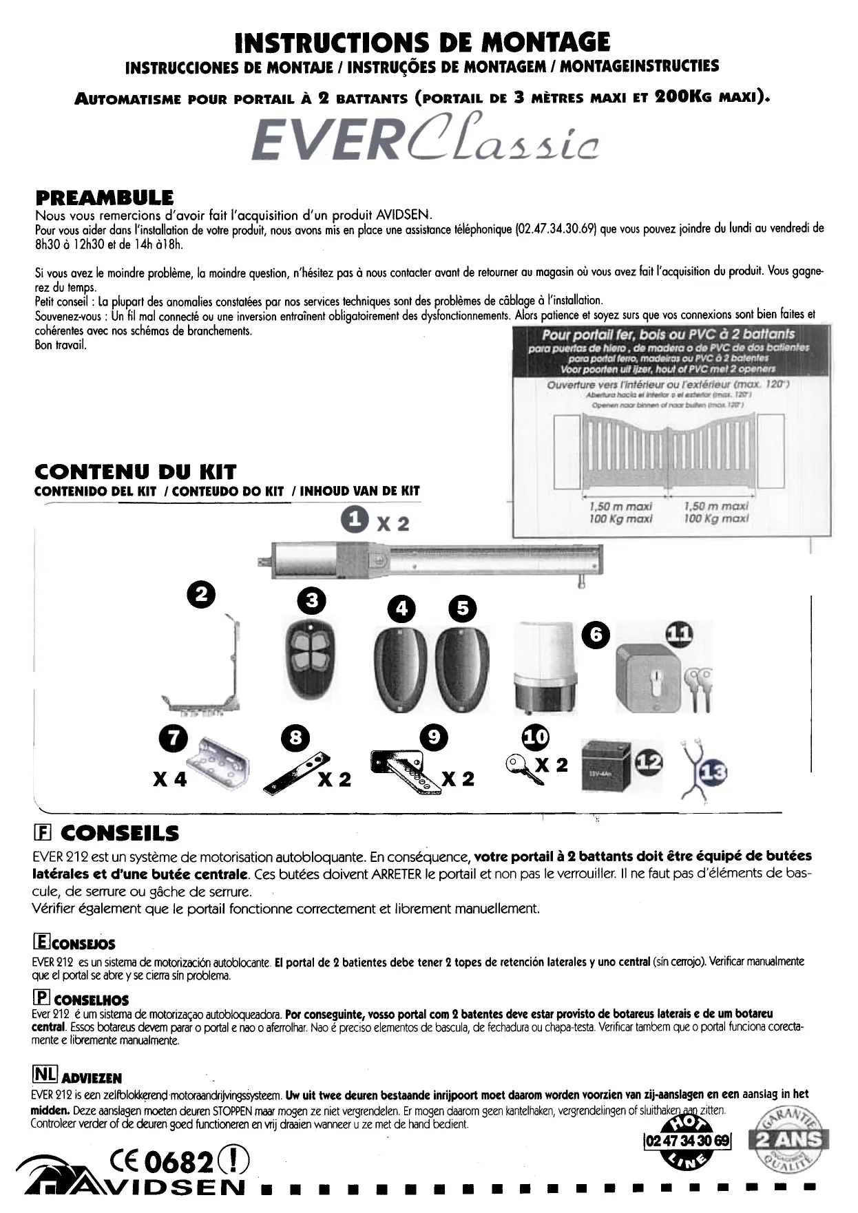 EVERCLASSIC - Motorisation de portail AVIDSEN - Notice d'utilisation et mode d'emploi gratuit