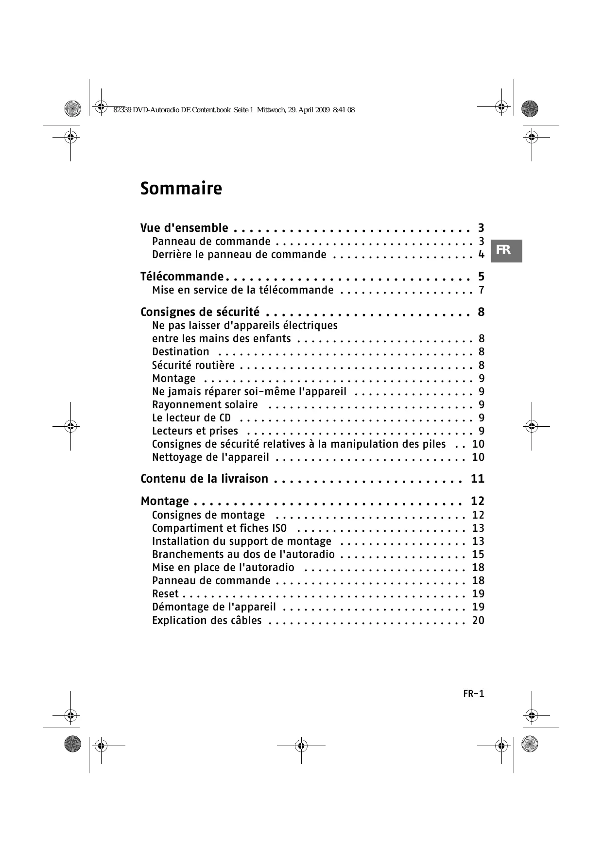 FR-4 82339 DVD-Autoradio DE Content.book Seite 5 Mittwoch, 29. April 2009 8:41 08 Télécommande