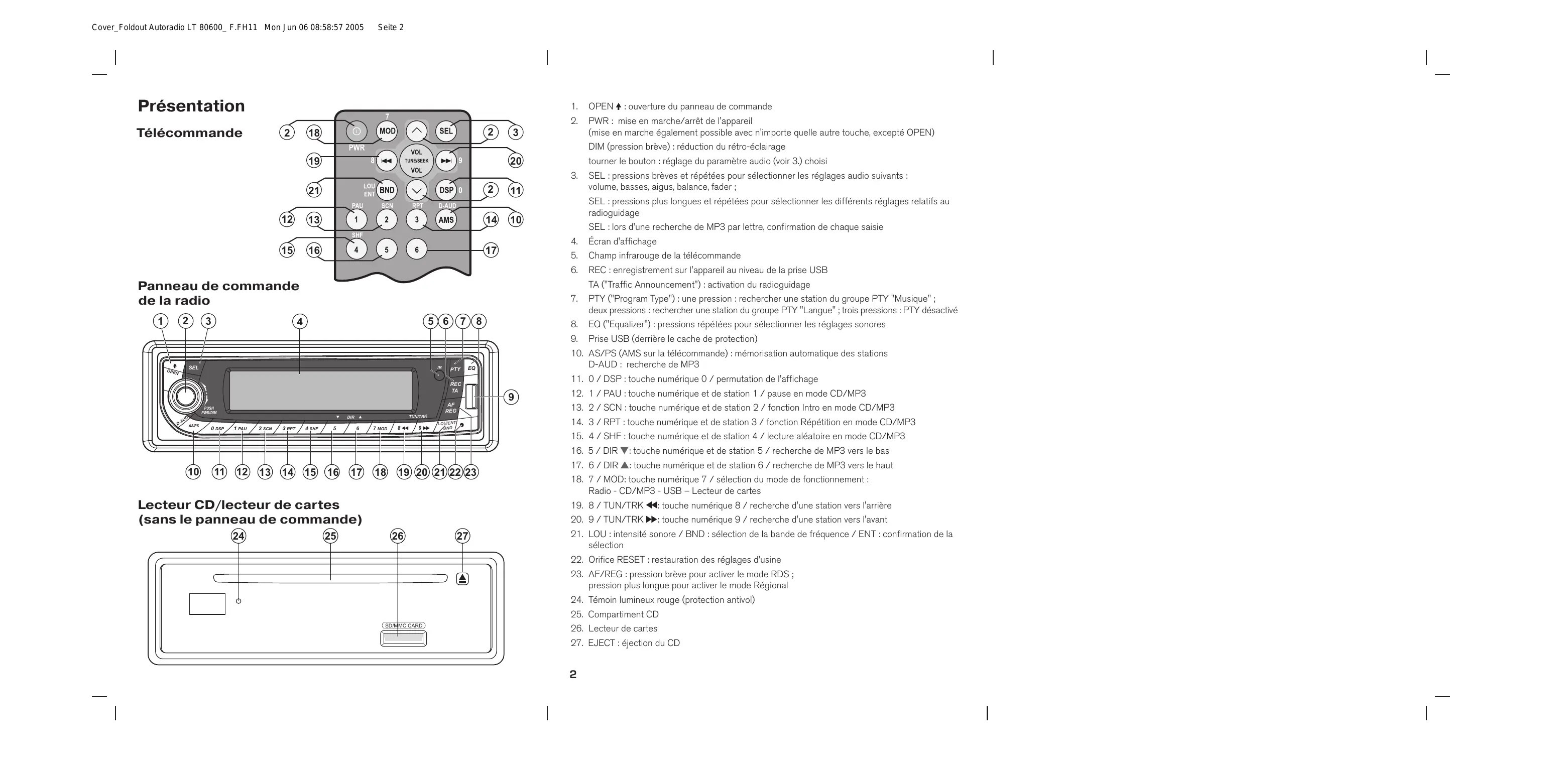 Veuillez déplier Cover_Foldout Autoradio LT 80600_ F.FH11 Mon Jun 06 08:58:57 2005 Seite 2 Présentation Télécommande
