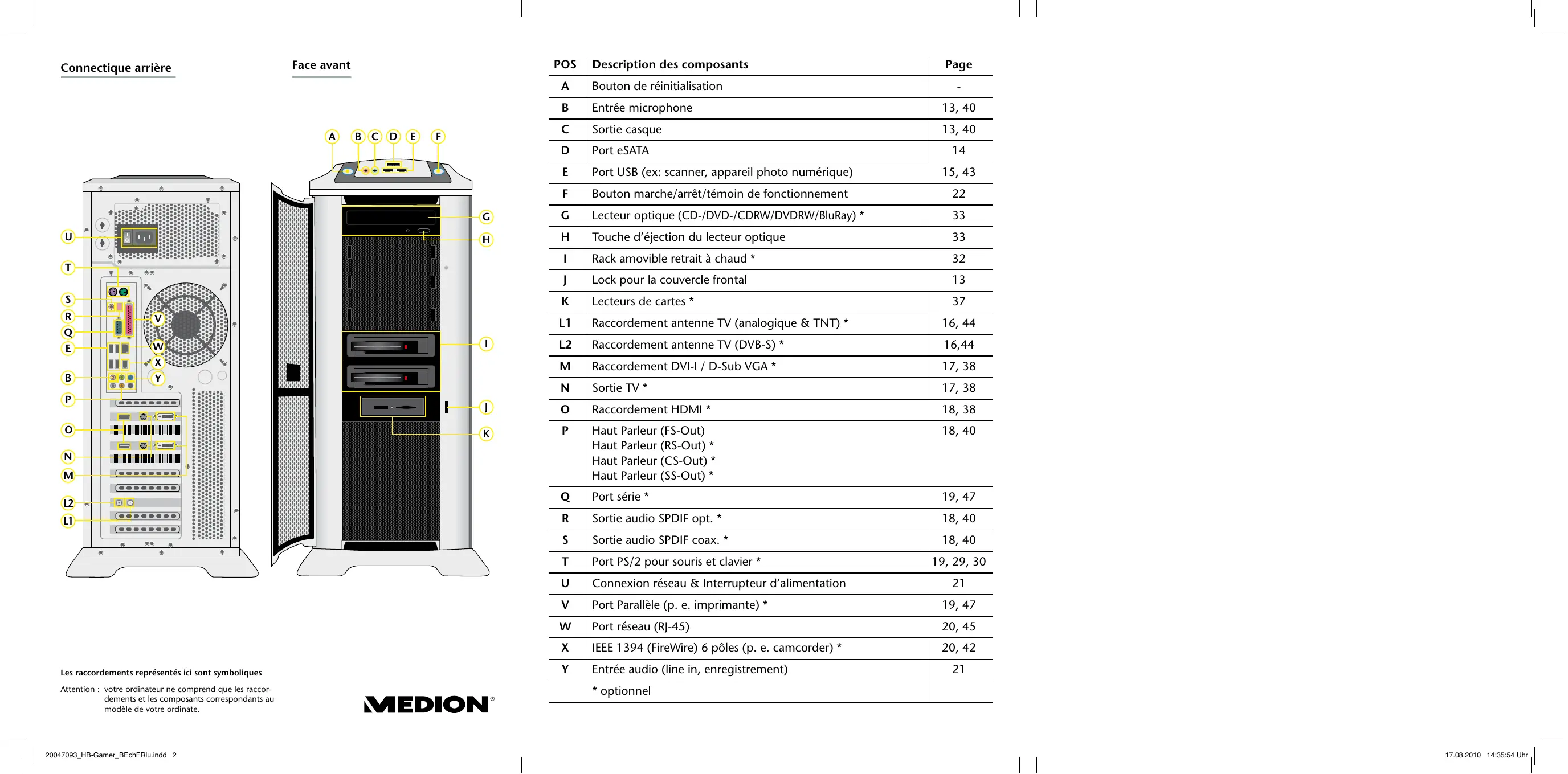Les raccordements représentés ici sont symboliques Attention : votre ordinateur ne comprend que les raccordements et les composants correspondants au modèle de votre ordinate. 20047093_HB-Gamer_BEchFRlu.indd 2 Page