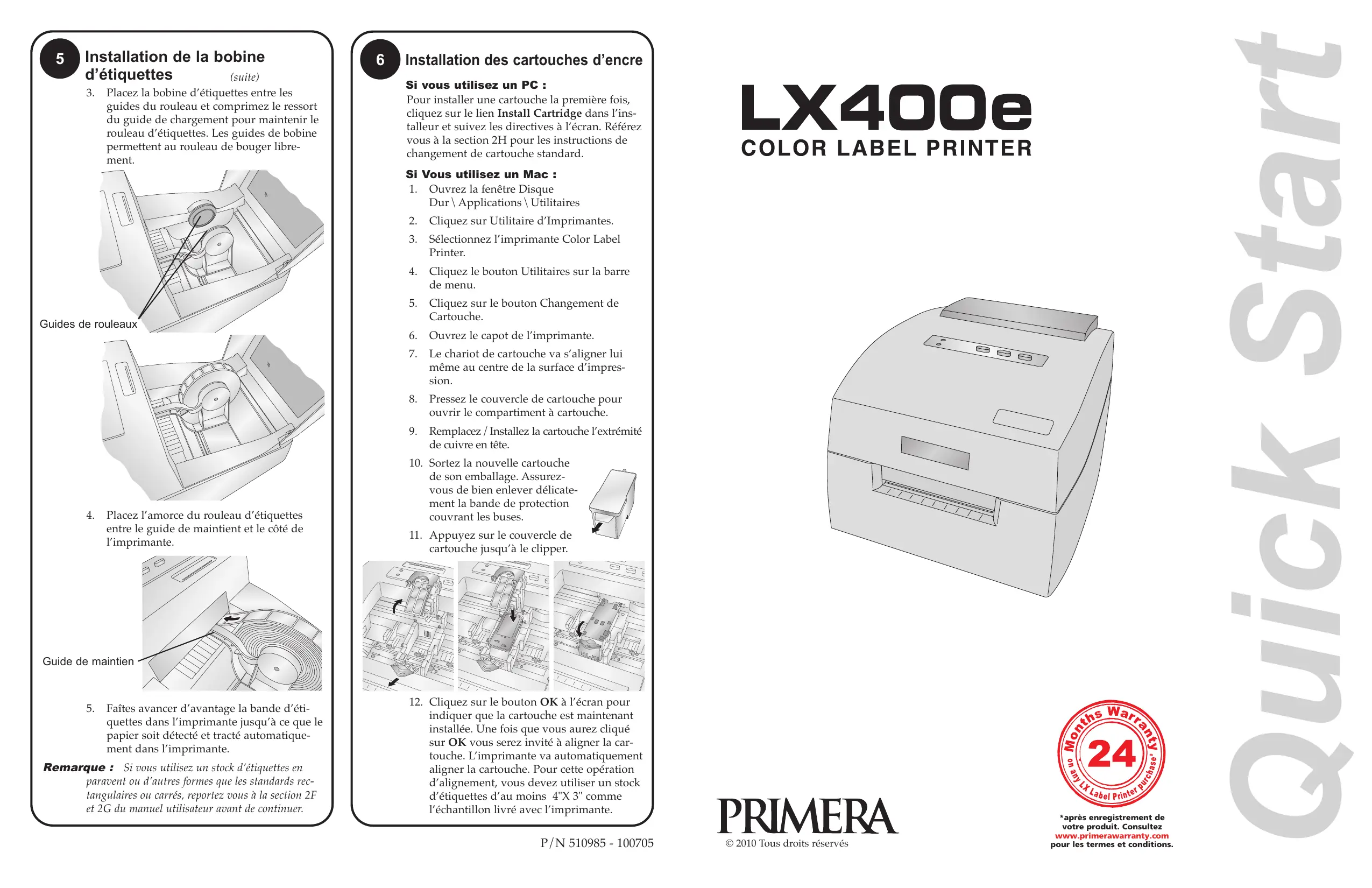 Retrouvez gratuitement la notice de l'appareil LX400E PRIMERA au format PDF.