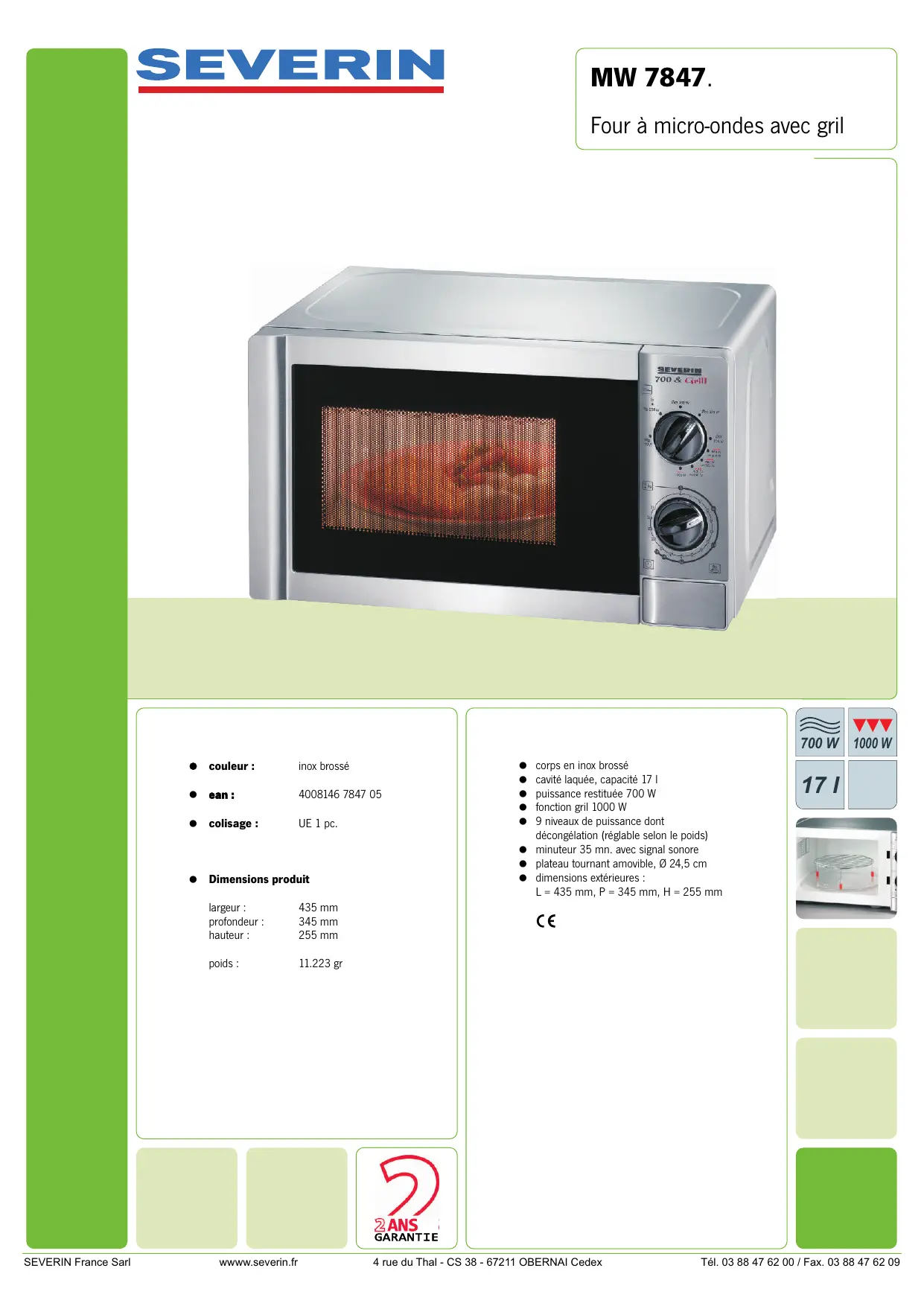 MW 7847 - FOUR A MICRO-ONDES - Four à micro-ondes SEVERIN - Notice d'utilisation et mode d'emploi gratuit