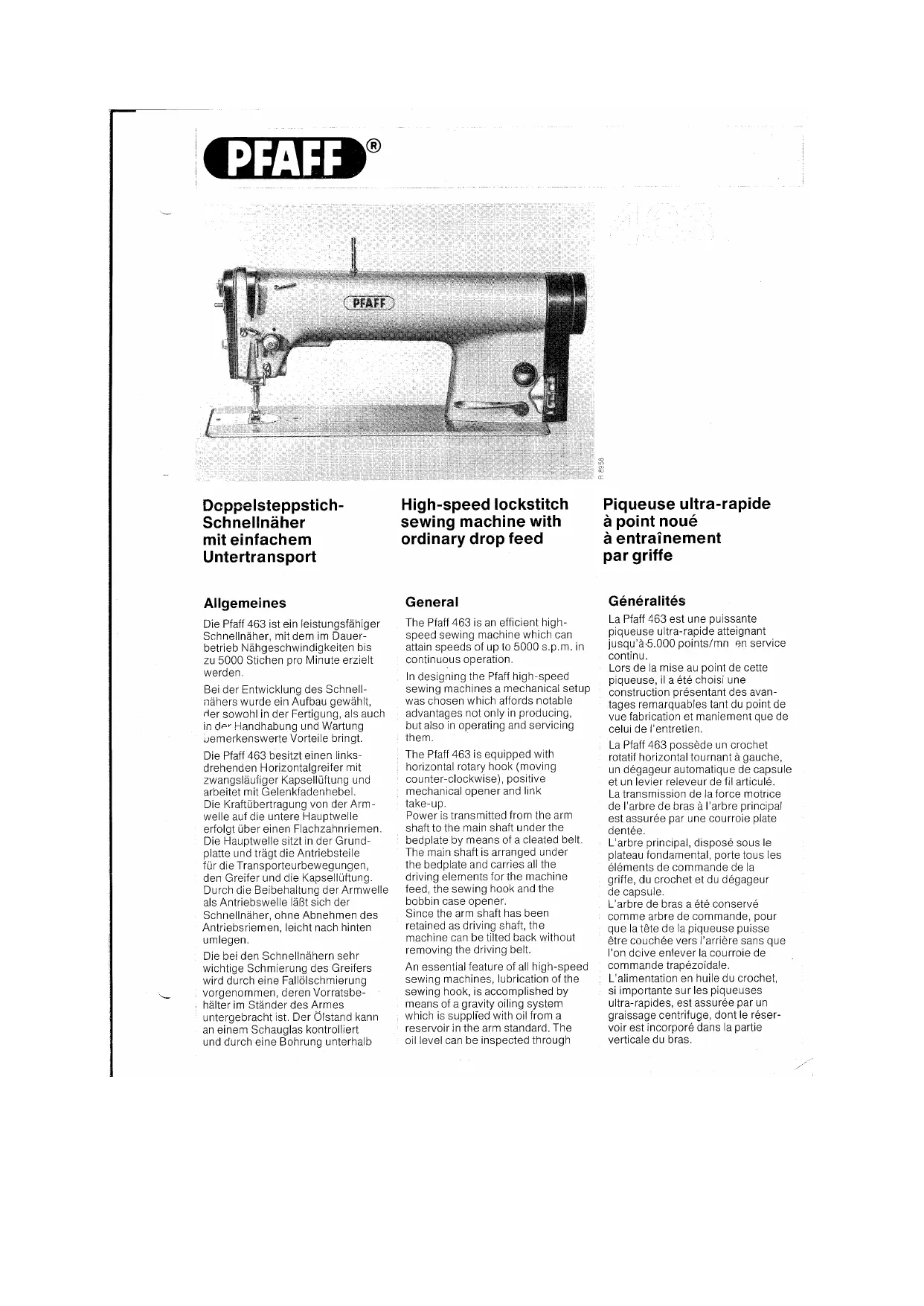 Retrouvez gratuitement la notice de l'appareil 463 PFAFF au format PDF.