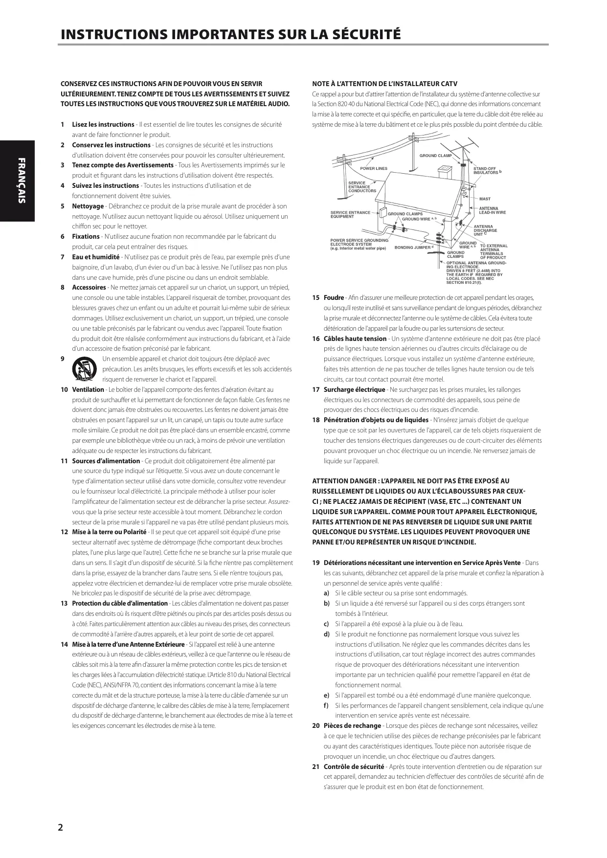 CONSERVEZ CES INSTRUCTIONS AFIN DE POUVOIR VOUS EN SERVIR ULTERIEUREMMENT. TENEZ COMPTE DE TOUS LES AVERTISSEMENTS ET SUIVEZ TOUTES LES INSTRUCTIONS QUE VOUS TROUVEREZ SUR LE MATRIEL AUDIO.