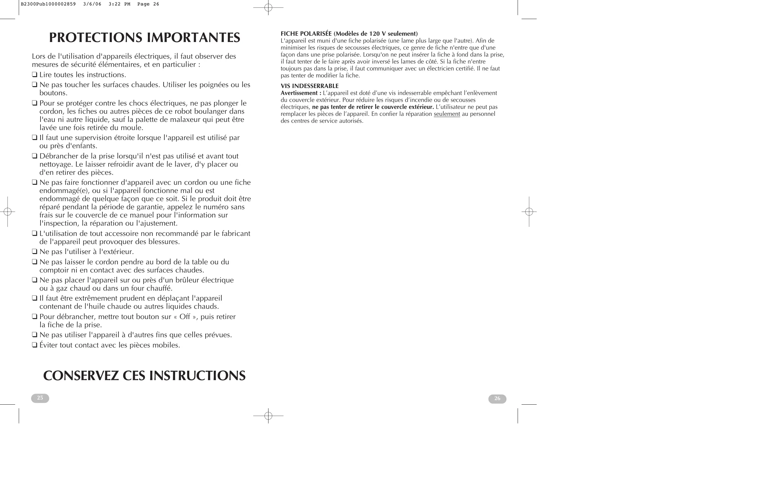 CONSERVEZ CES INSTRUCTIONS