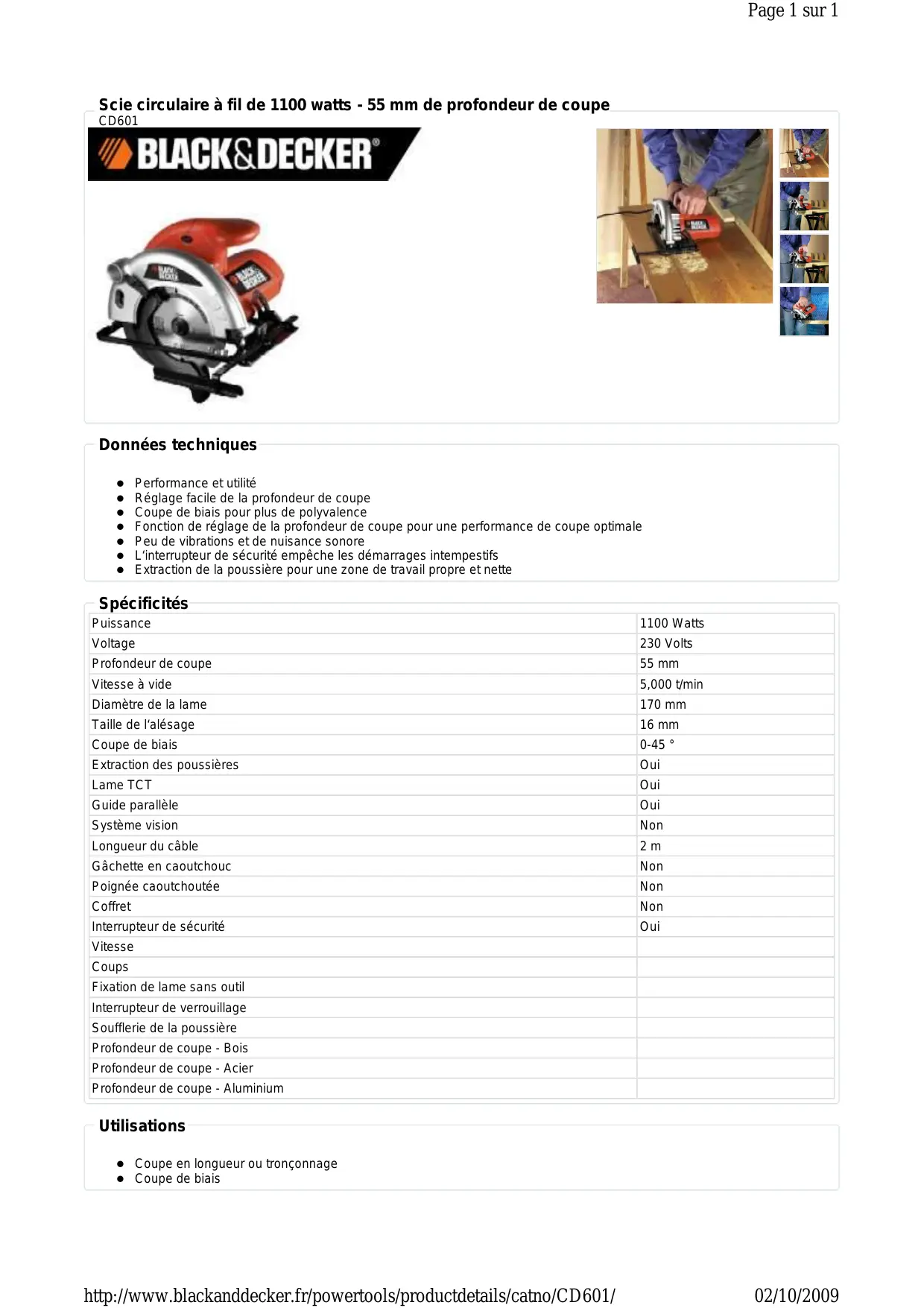 BLACK & DECKER CD601 - Scie circulaire BLACK & DECKER - Notice d'utilisation et mode d'emploi gratuit