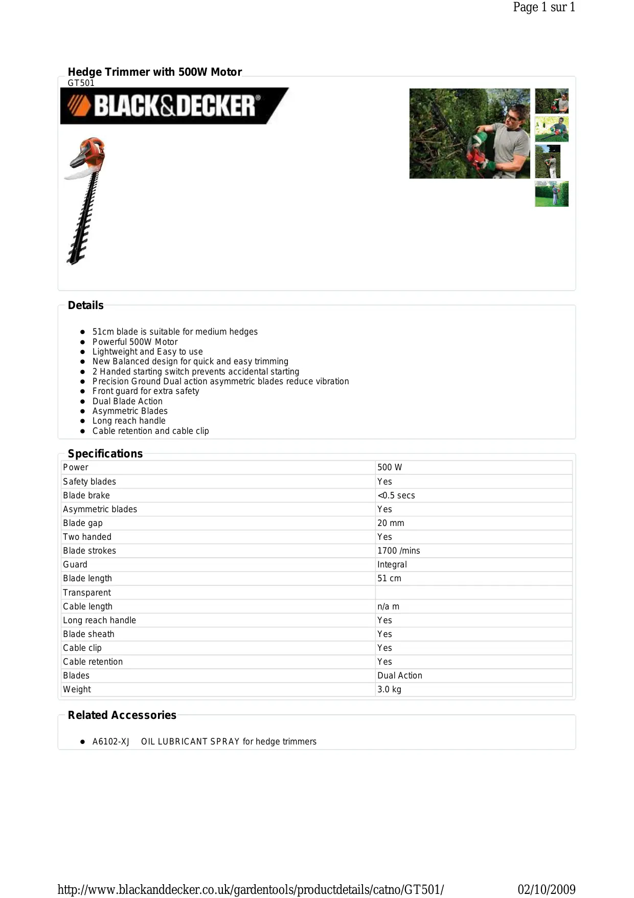 Retrouvez gratuitement la notice de l'appareil BLACK & DECKER GT501 BLACK & DECKER au format PDF.