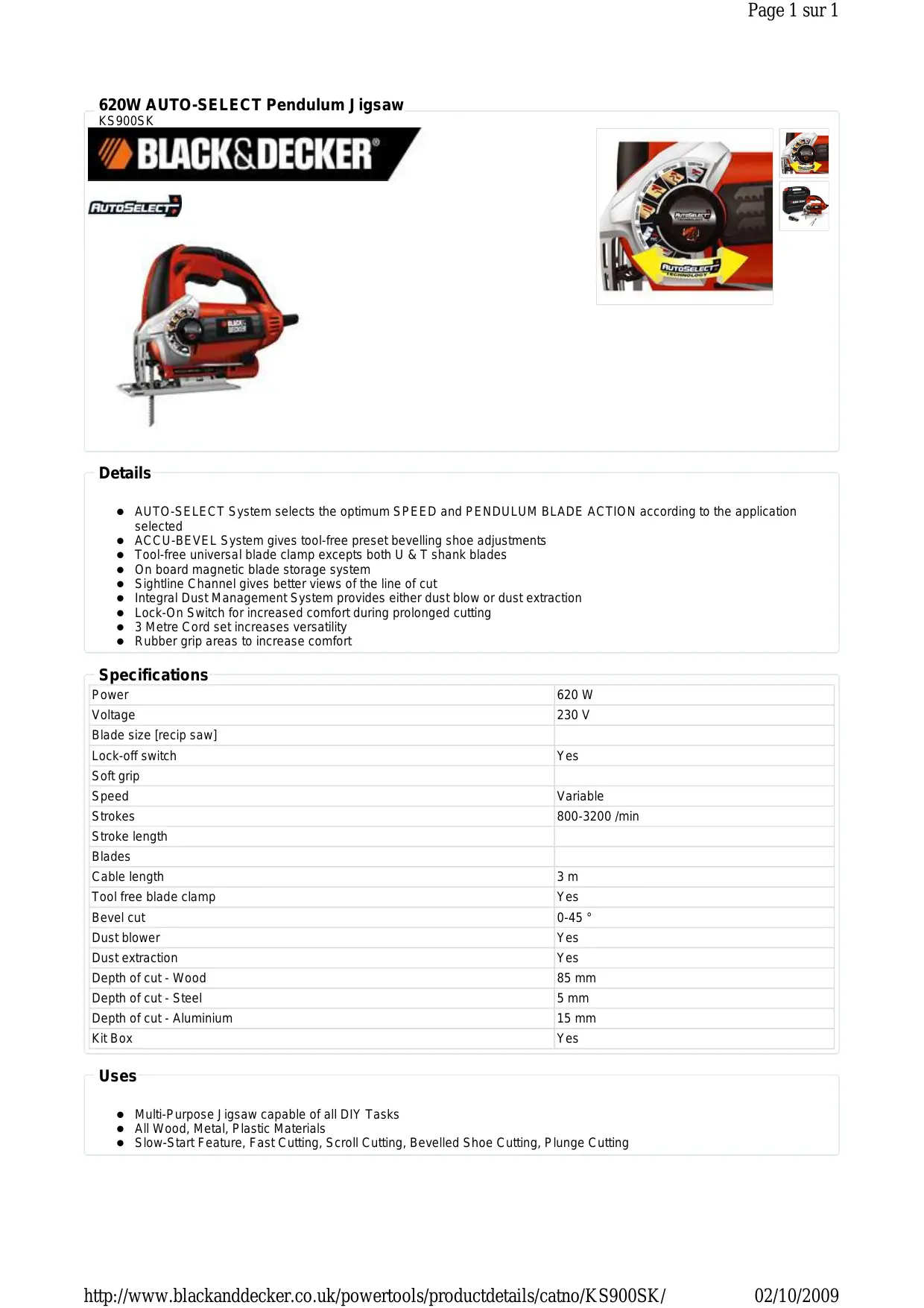 Retrouvez gratuitement la notice de l'appareil BLACK & DECKER KS900SK BLACK & DECKER au format PDF.