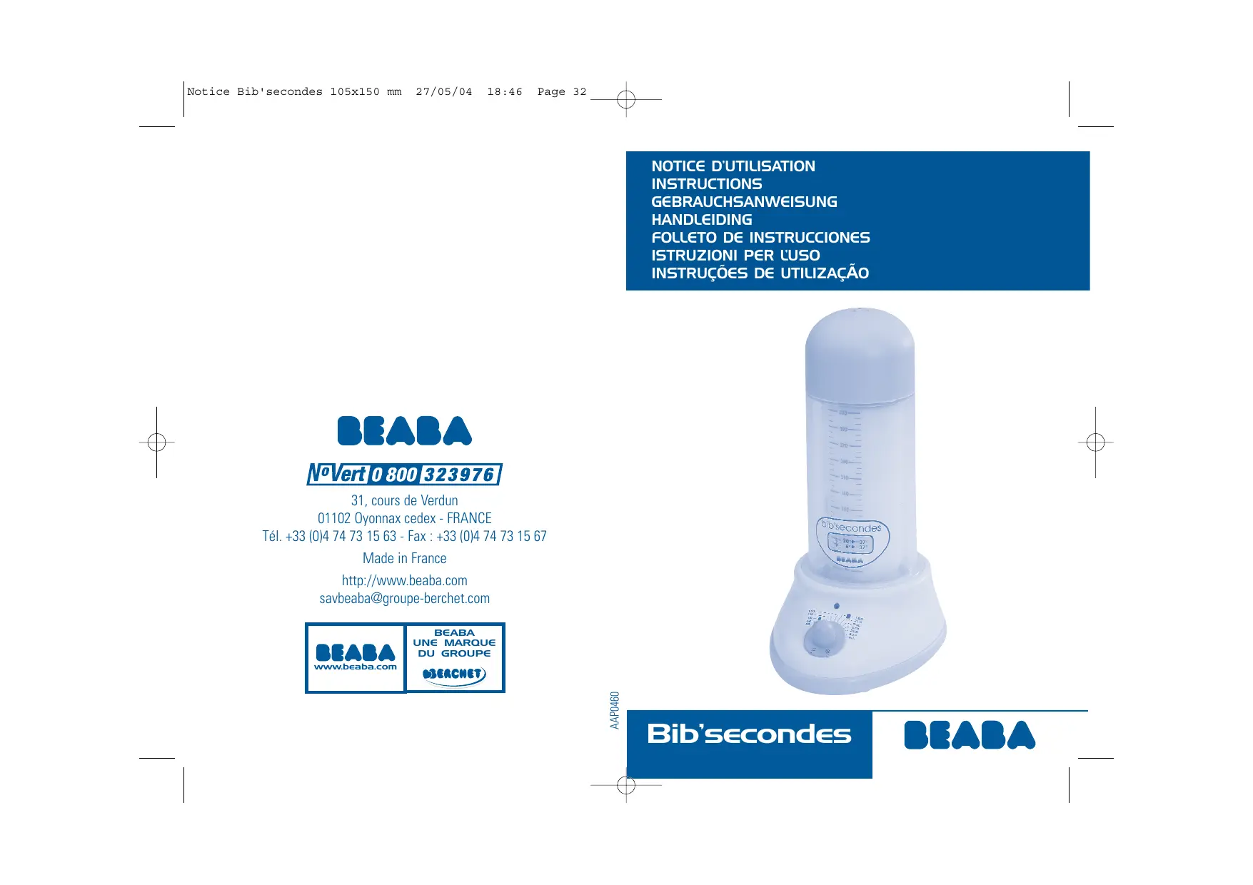 Retrouvez gratuitement la notice de l'appareil BIB'SECONDES, BIB'SECONDES GIPSY 911276 BEABA au format PDF.